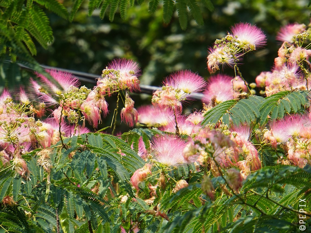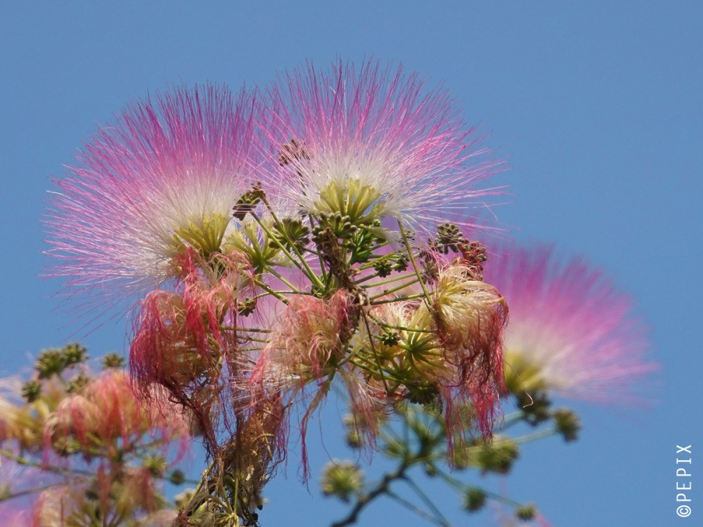 Das ist eine „Albizia“, wie miesvandenbergh wusste (Etwas weiter oben in den Kommentaren) Ich wusste gar nicht, was das ist, fand die Blüte aber auch so schön! Ja, ich wäre jetzt auch gern wieder da!
