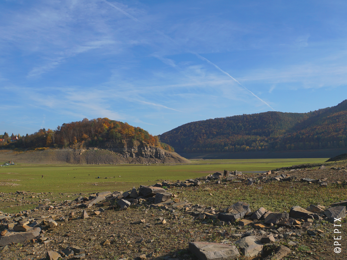 Ich möchte nicht wissen wie es in der Okertalsperre im Harz aussieht. Dort ist auch ein ehemaliger Ort geflutet worden. Die Kirchturmspitze schaut bestimmt auch schon herraus.