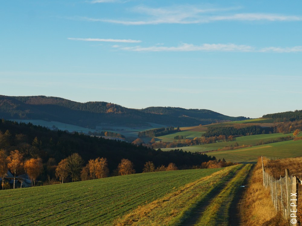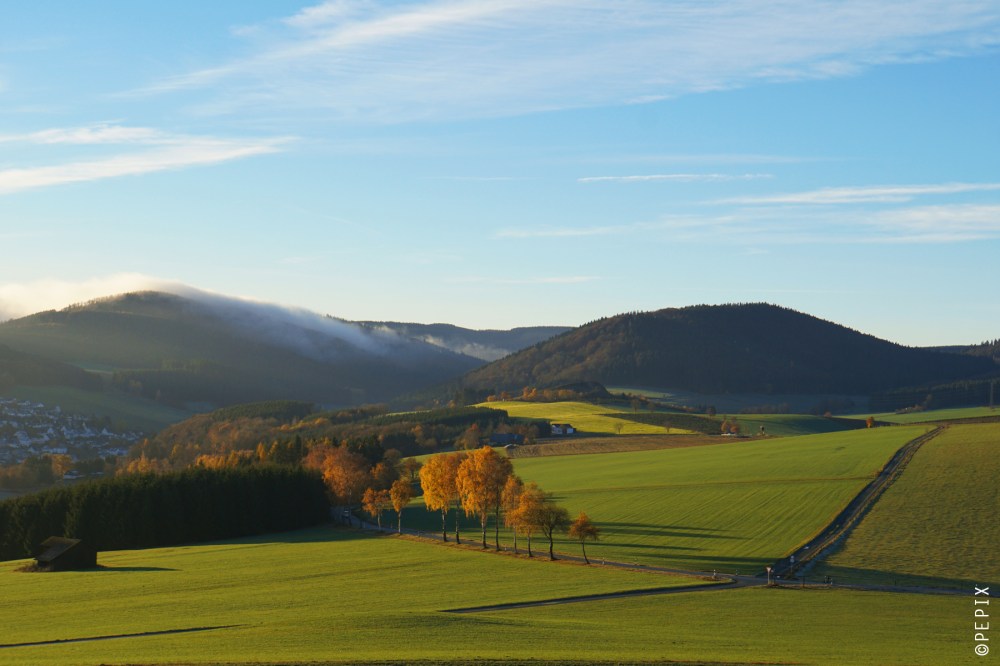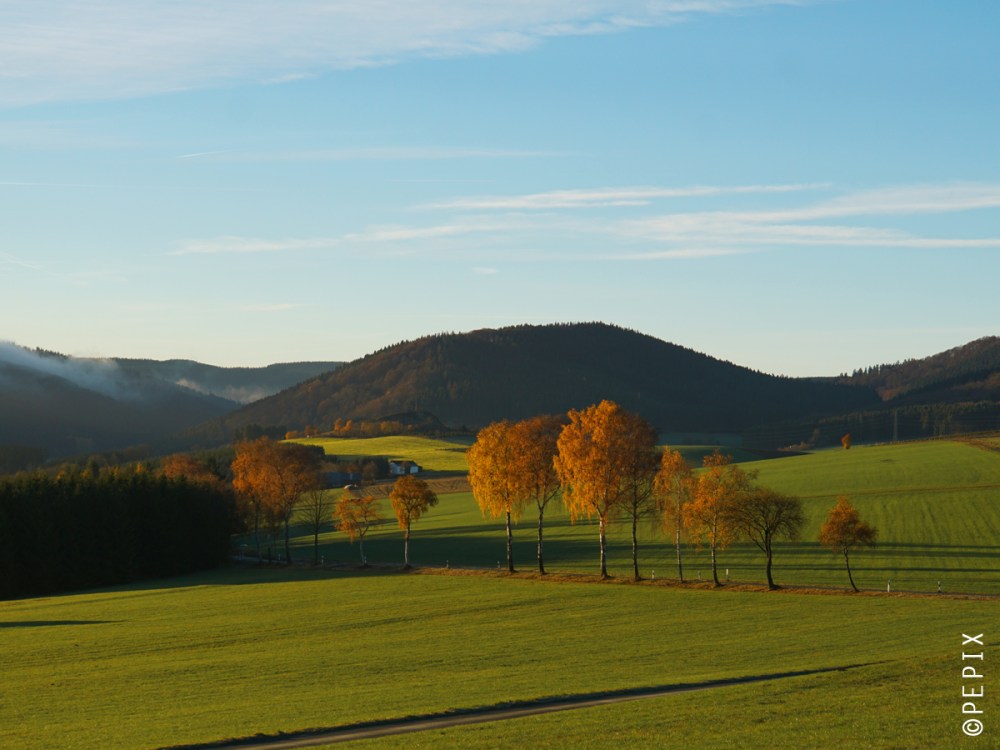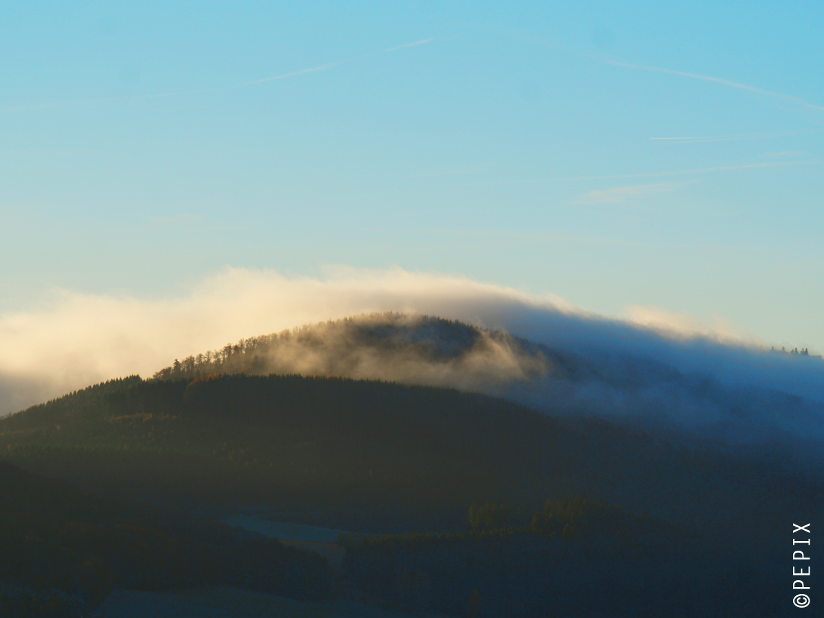 … bleibt mir dieser Tage manchmal gar nicht anderes übrig, als mal schnell zwischendurch anzuhalten und Fotos zu machen oder auch mal kurz komplett vom Weg abzukommen. An diesem Morgen war in Winterberg dichter Nebel und nur wenige Kilometer weiter – auf dem Weg ins Tal – war kein Wölkchen am Himmel. Vor dem Kahlen Asten stauen sich die Wolken gern ein bisschen.