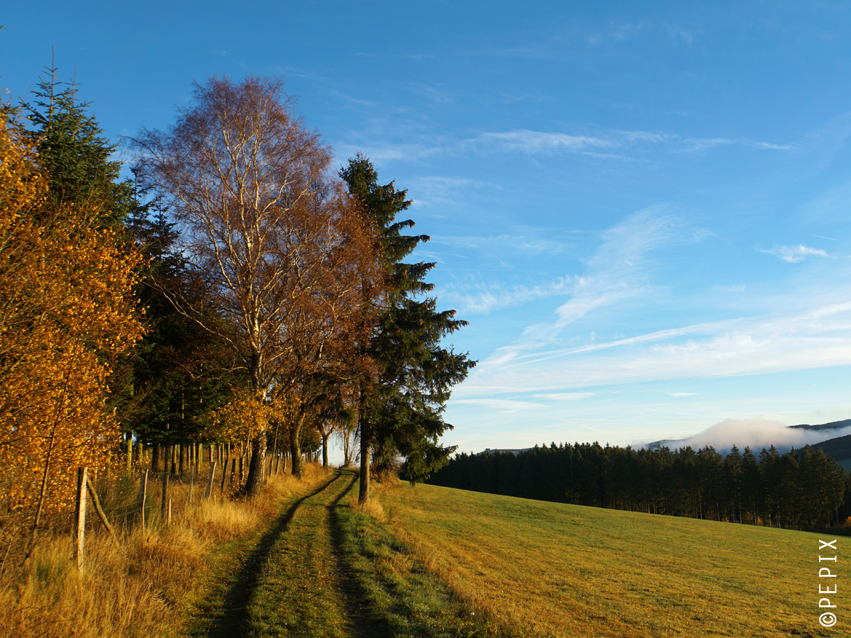 On my way to work I sometimes have no choice but to stop and take some pictures or to get away from my way completely. This morning there was thick fog in Winterberg and only a few kilometres further – on the way to the valley – there was not a cloud in the sky. Before the Kahlen Asten, the clouds like to build up.