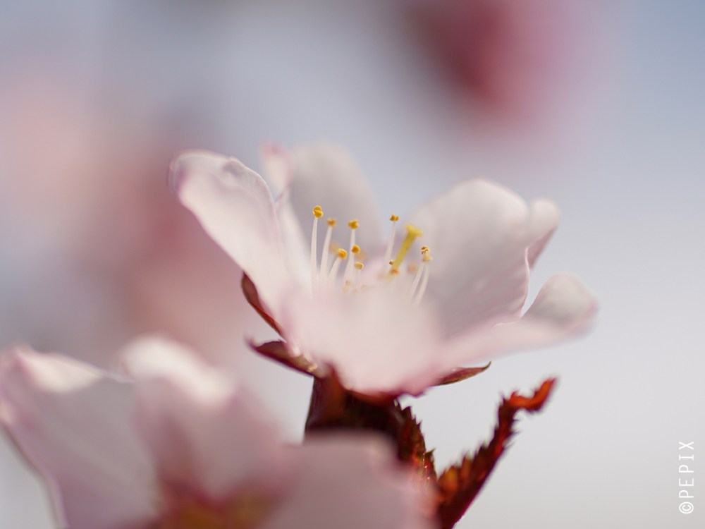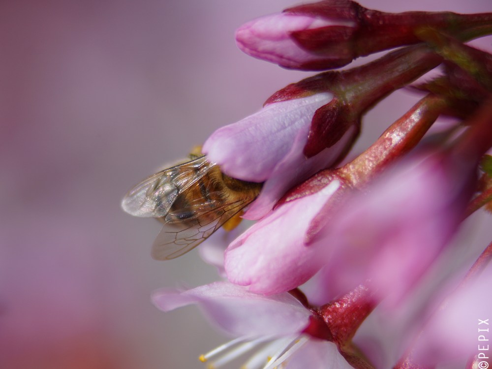 … and that’s my little ornamental cherries. This year they are even blooming very luxuriantly – much to the delight of bees and bumble bees. When you go up the stairs, you are followed by a huge buzzing. Of course I had to stop by with my macro.