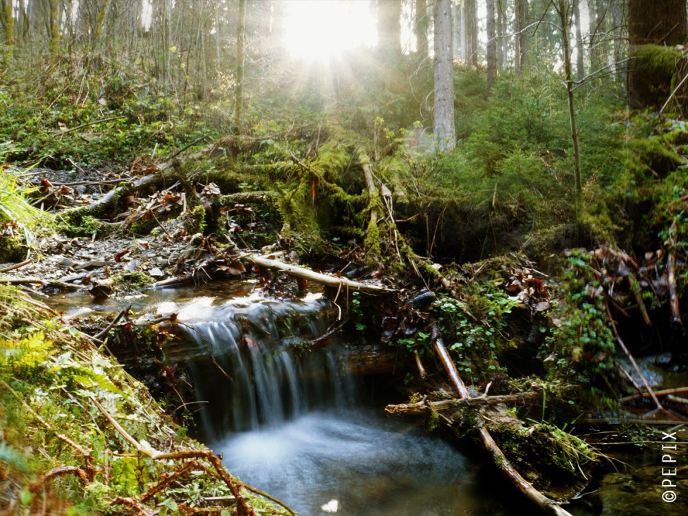 Es ist zwar noch nicht richtig grün bei uns, aber im Wald sieht es ja das ganze Jahr über grün aus. Wenn dann die Bäche gluckern und gurgeln, bin ich immer gerne unterwegs.