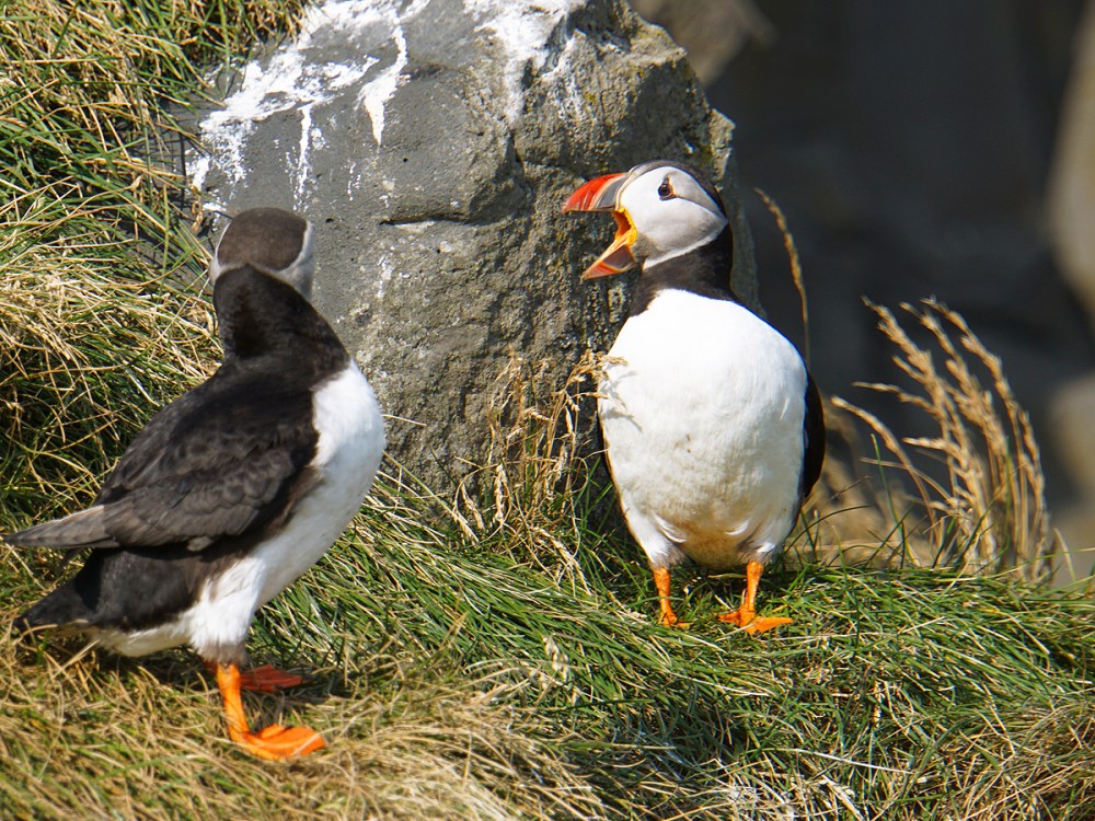 In der Nähe von Vik bei Kap Dyrhólaey im Süden Islands kann man auch prima Papageientaucher beobachten. Während mir da letztes Jahr fast die Kamera im Sturm weggeflogen wäre, war es dieses Jahr ganz schön dort … und die süßen Puffins waren ganz nah. ❤