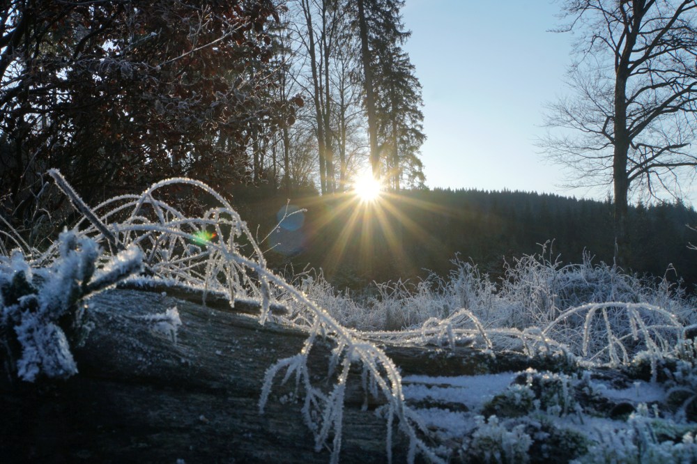 Sehr frostig war es gestern bei uns. In den Tälern, wo die Sonne erst sehr spät ihre Strahlen hinschicken konnte, blieb es eiskalt und es bildeten sich die schönsten Eiswunderwerke.