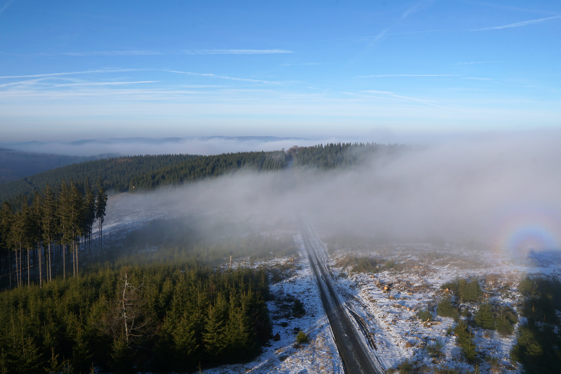 … gibt es jetzt im Sauerland. Der richtige Schnee lässt immer noch auf sich warten, aber kalt war es die letzten Tage. Die Landschaft war teils im Nebel, teils in der Sonne, was immer tolles Fotowetter ist. Und auf Bild 1 und 3 ist sogar ein kleines „Brockengespenst“ zu sehen 🙂