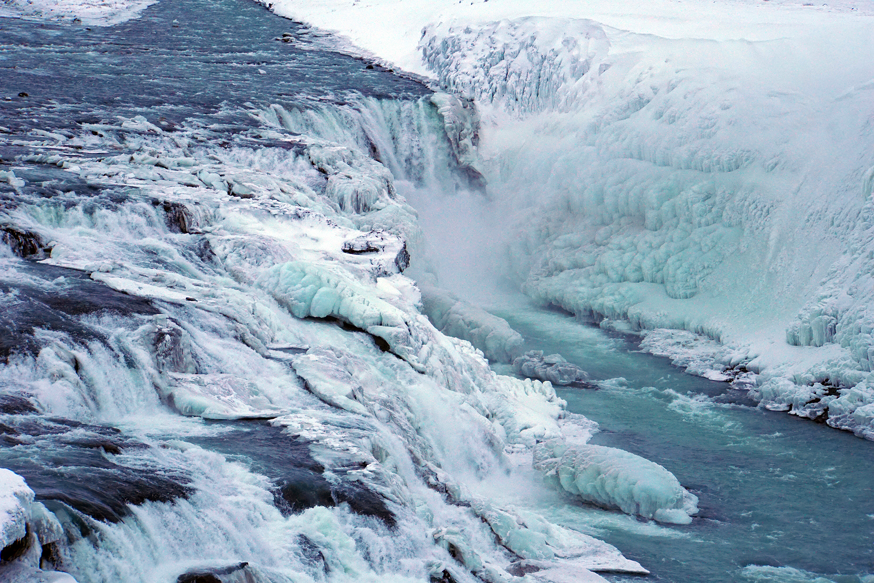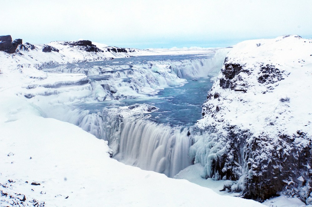 Iceland (Iceland) was like its name in the first days … it was very cold, icy and beautiful. The colours of Iceland in winter are white, black and blue. The waterfalls are very different from those in summer … …partly frozen with blue spray, like in a fairy tale.