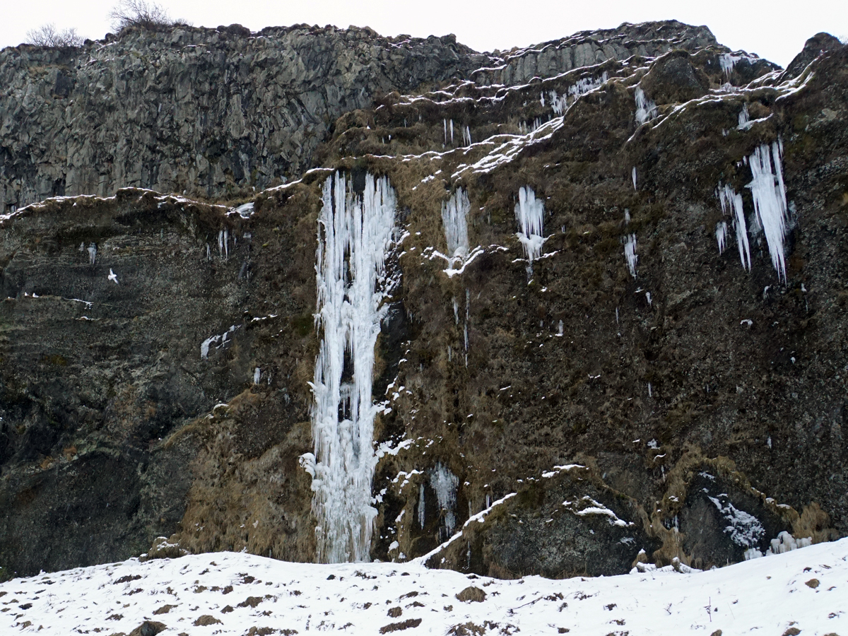Auch am Skogafoss war alles vereist, aber je weiter man Richtung Süden kam, umso mehr taute alles auf. Bei all diesen Bildern schüttete es wie aus Eimern – die Bildqualität ist da nicht immer die beste …