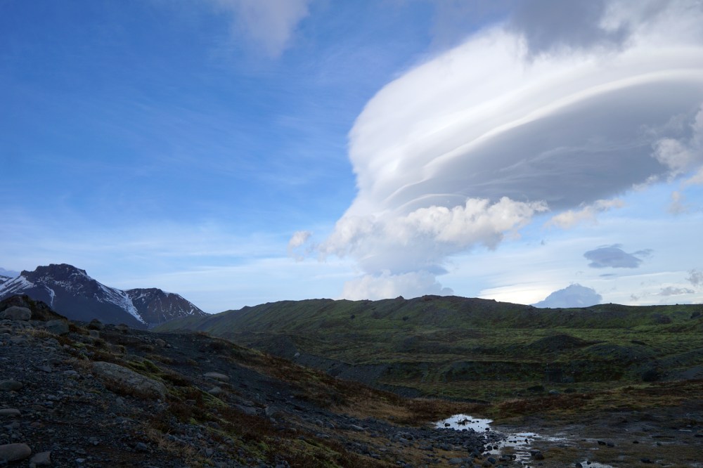 Island überrascht einen immer wieder. Wir waren auf dem Weg zur Gletscher-Lagune, die ich bereits im Sommer als absolutes Highlight empfunden hatte und fuhren Ewigkeiten durch Regen und graues Wetter. Ich wusste, was wir alles nicht sehen konnten und fand das ziemlich schade. Und dann, kurz vor unserem Ziel, riss der Himmel auf und wir konnten nicht glauben, was wir sahen: Die Wolken formten sich zu den unfassbarsten Gebilden am Himmel, ließen erst an ein Ufo, dann an einen Vulkanausbruch denken. Als wir anhielten, um ein Bild zu machen, wurde ich mit dem Sturm halb aus dem Auto gerissen. Wir hatten bei Rückenwind bis dahin nicht gemerkt, wie stürmisch es plötzlich geworden war. Ich habe noch nie derartige Wolken gesehen und ich werde das ganz sicher niemals vergessen.