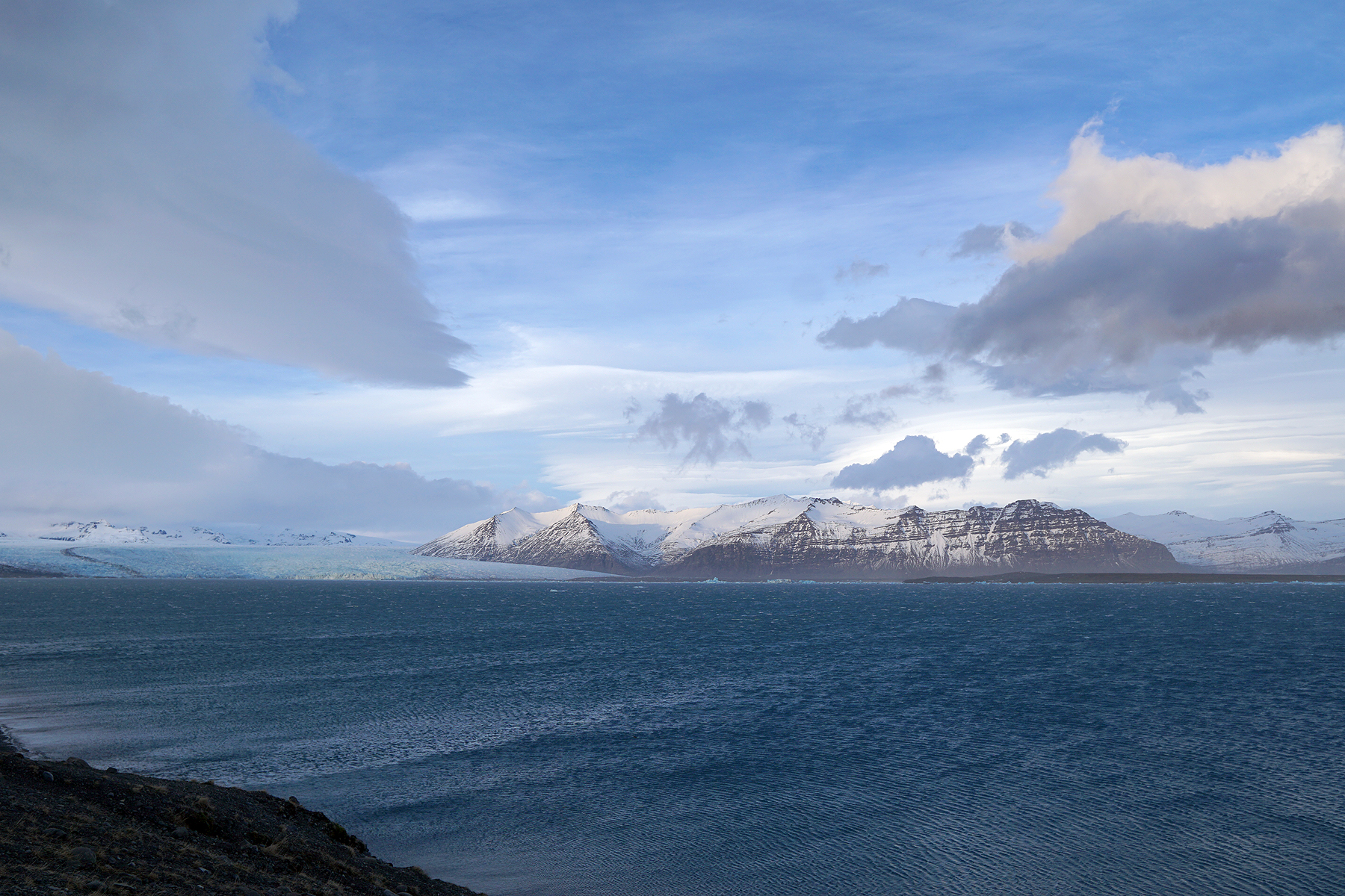 Iceland is great and alway different. We were on the way to the glacier lagoon, which I had already experienced as an absolute highlight in summer, and drove endlessly through rain and grey weather. I knew what we couldn’t see and thought that was a pity. And then, just before we reached our destination, the sky cleared up and we couldn’t believe what we saw: The clouds formed the most incredible shapes in the sky, first making us think of an UFO, then of a volcanic eruption. When we stopped to take a picture, the storm tore me half out of the car. With a tail wind we hadn’t noticed how stormy it suddenly had become. I have never seen clouds like that before and I will certainly never forget it.
