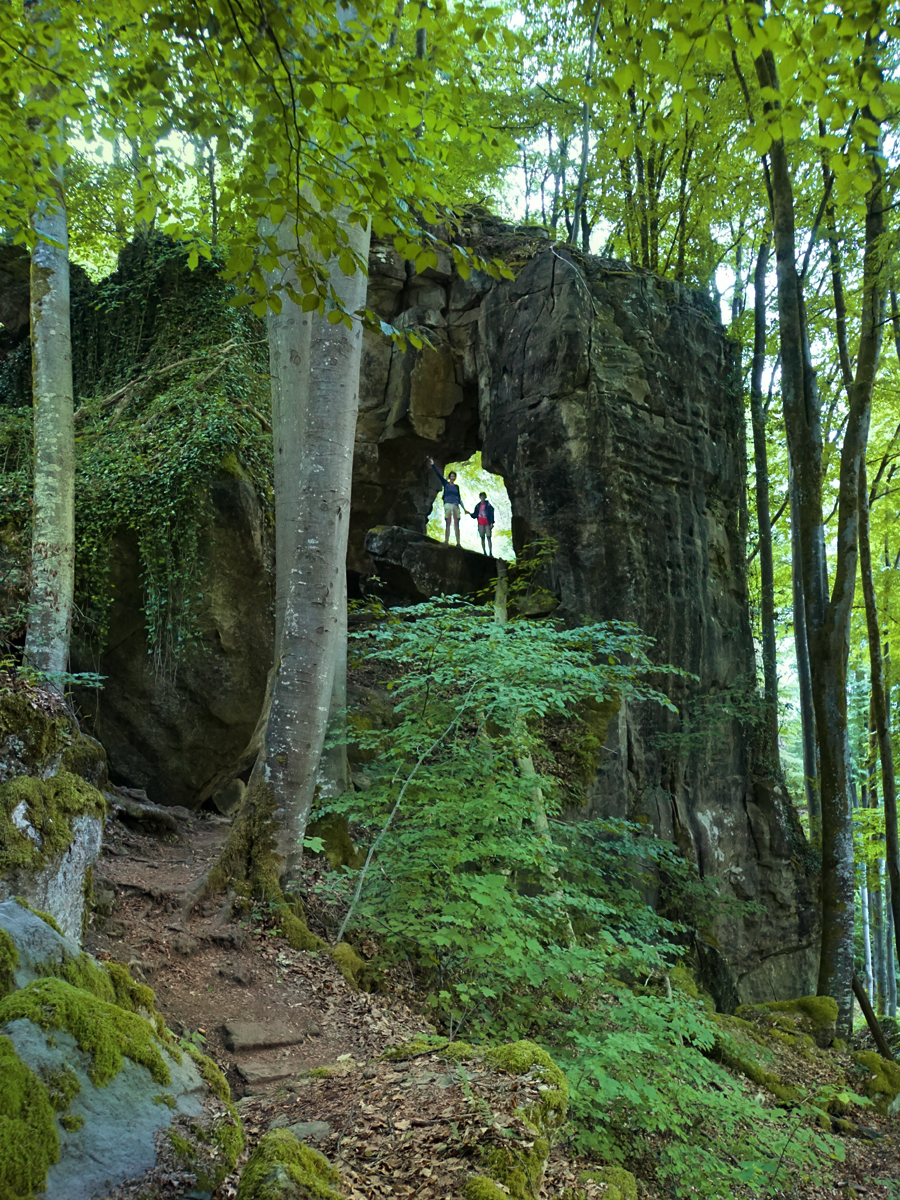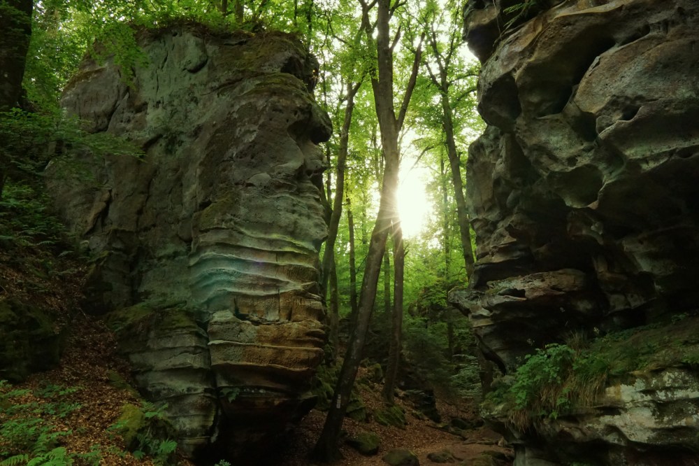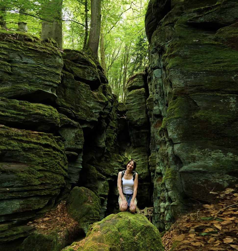 Schon der Name hört sich spannend an: Teufelsschlucht. Das konnten wir uns nicht entgehen lassen! Die Teufelsschlucht befindet sich (laut WIKI) am Ostrand des Ferschweiler-Plateaus im Naturpark Südeifel in der Nähe von Irrel. Sie entstand gegen Ende der letzten Eiszeit, vor rund 10.000 Jahren infolge eines Felssturzes bzw. einer Serie von Felsstürzen. Und der Name verspricht nicht zu viel. Wir sind sehr lange durch die Teufelsschlucht gewandert, das Vorwärtskommen ist mühselig und auch sehr spannend, ein Gewitter überraschte uns und verlaufen haben wir uns auf der „Teuflischen Acht“ auch noch, aber dennoch: Was für eine irre Gegend! Voller Felsspalten, toller Felsen, Steintrolle und wunderbarer Natur! Ganz klare Empfehlung!