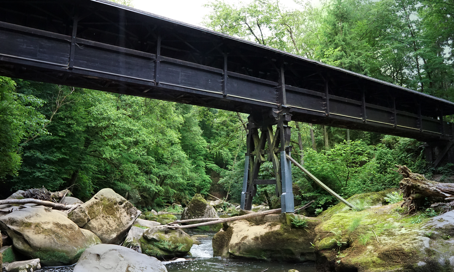 The name sounds exciting: Devil’s Gulch. We couldn’t have missed that! The Devil’s Gorge is located (according to WIKI) on the eastern edge of the Ferschweiler Plateau in the South Eifel Nature Park near Irrel. It was formed towards the end of the last ice age, about 10,000 years ago as a result of a rockfall or a series of rockfalls. And the name does not promise too much. We hiked through the Devil’s Gorge for a very long time, the advancement is laborious and also very exciting, a thunderstorm surprised us and we got lost on the „Devil’s Eight“ as well, but still: What a crazy area! Full of crevices, great rocks, stone elfs and wonderful nature! Very clear recommendation!