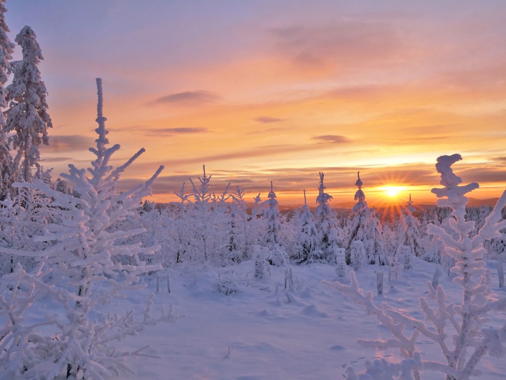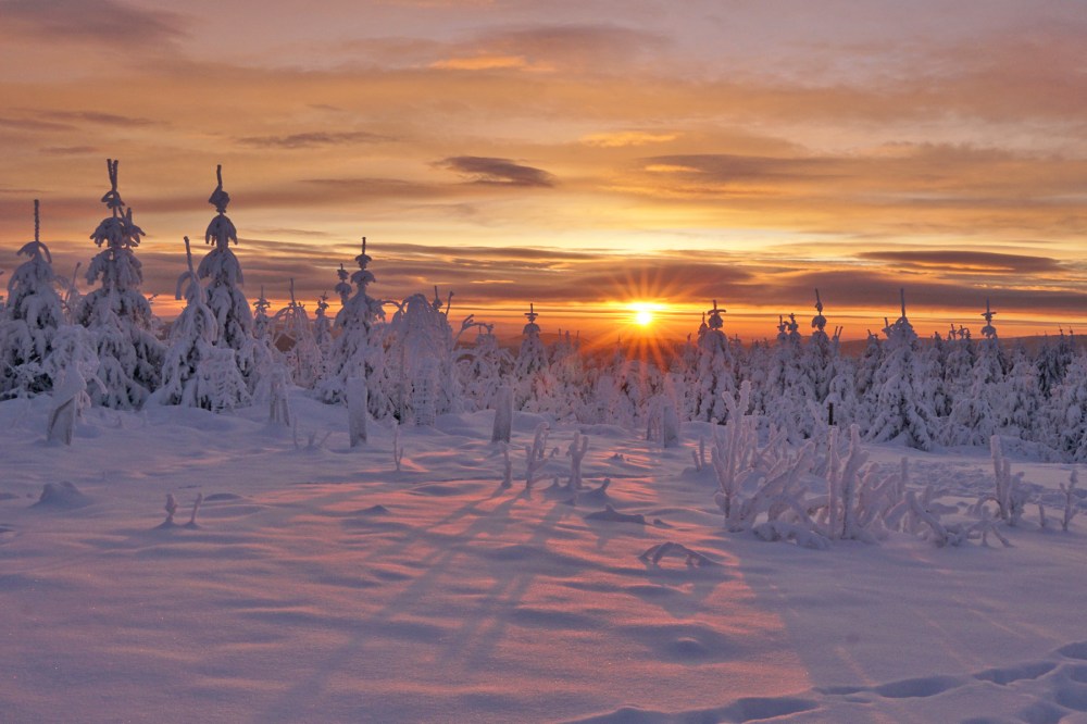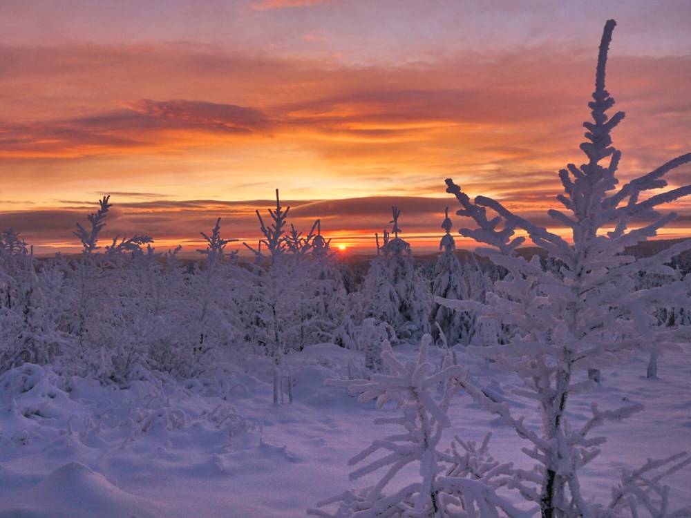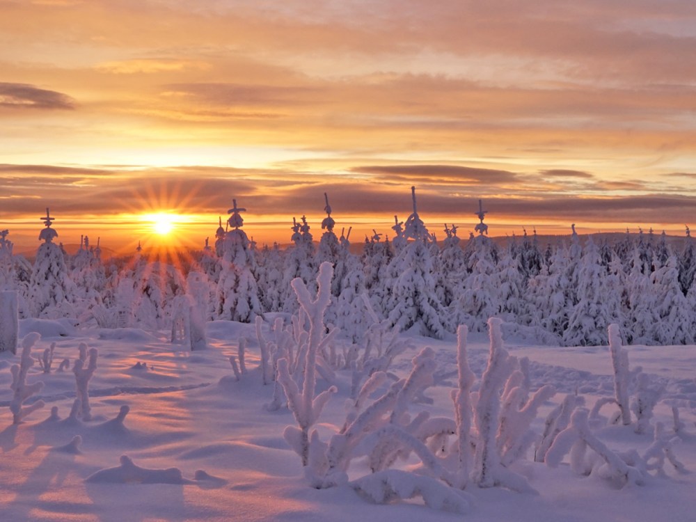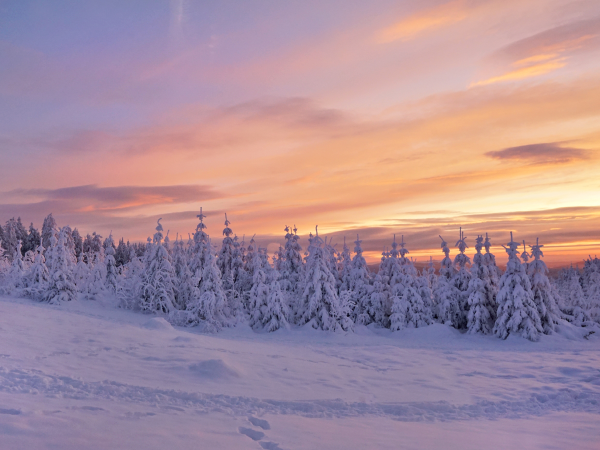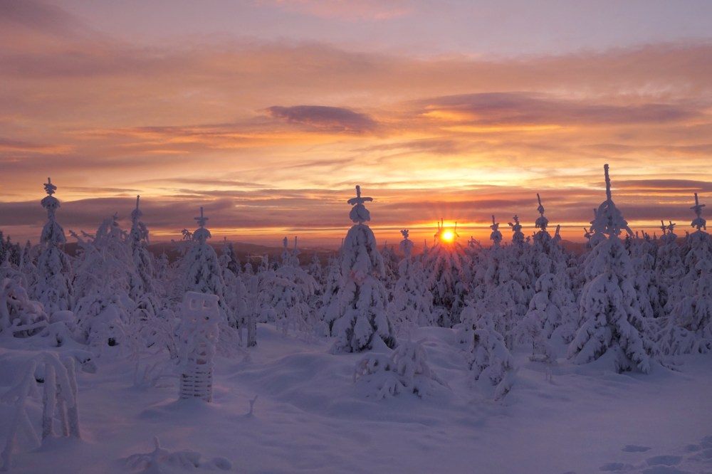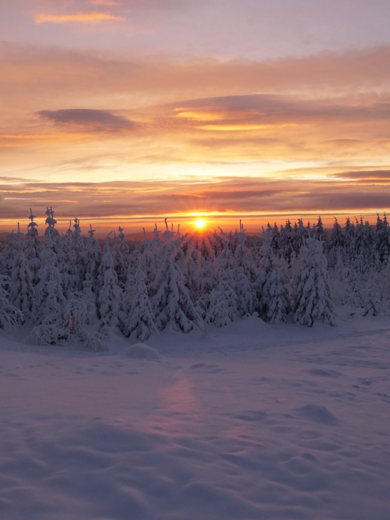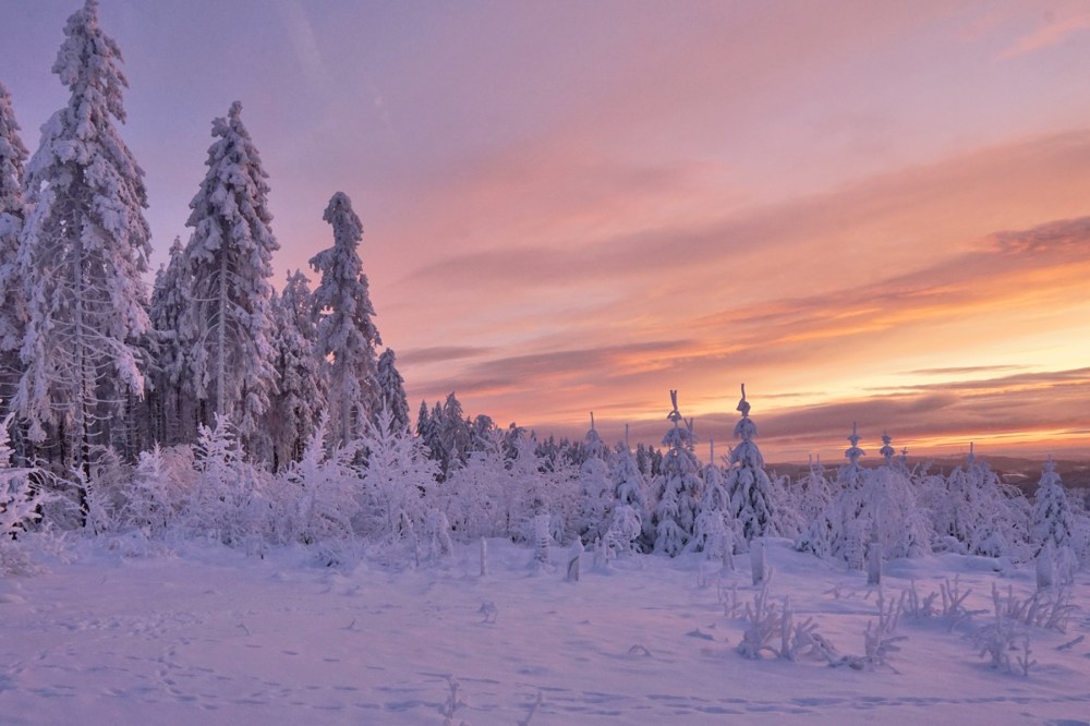 Am ersten Tag, als der Kahle Asten nicht mehr gesperrt war, war ich zur Stelle, um den ersten richtig tollen Wintersonnenaufgang in diesem Winter zu bewundern. Unglaublich schön war das! Zumal ich den ganzen Kahlen Asten für mich allein hatte.