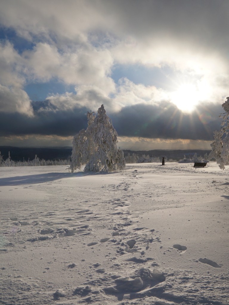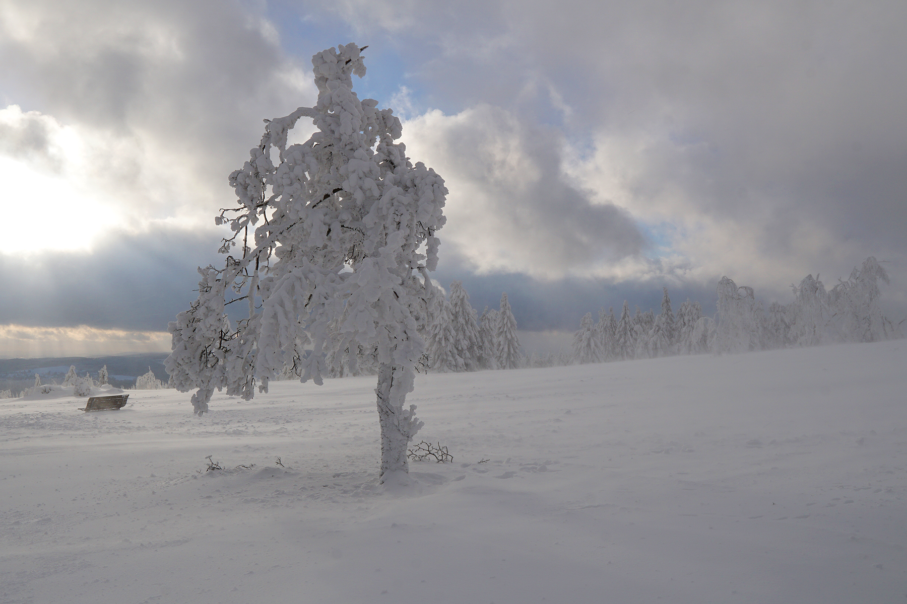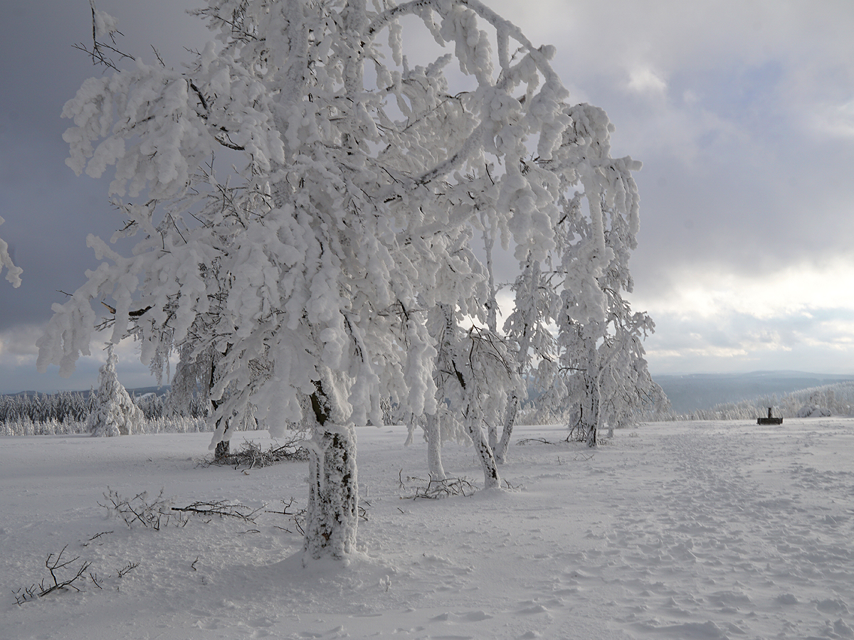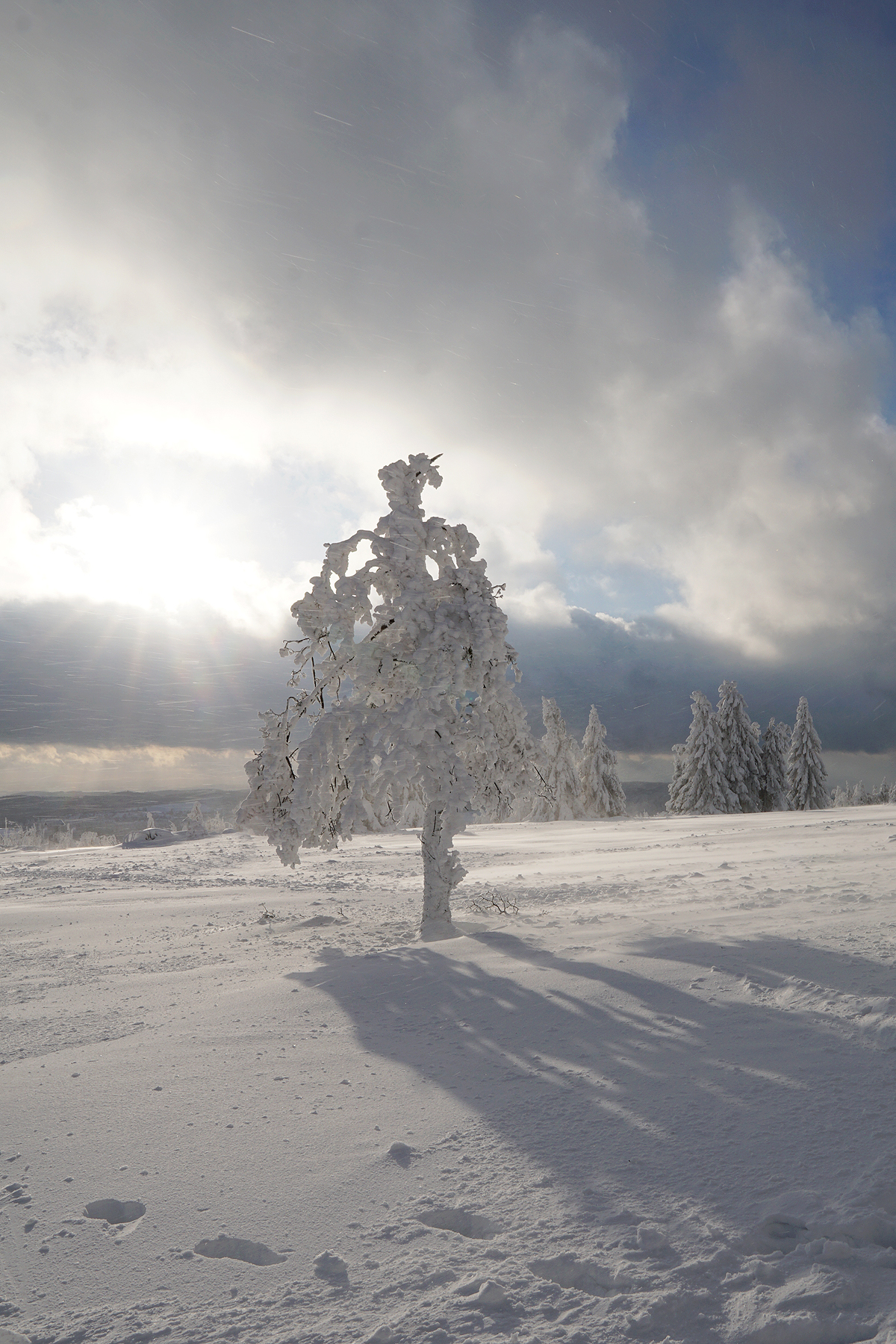 At the top of the Sauerland, everything is still frozen. The branches hang so full of ice and snow that they can hardly bear all that snow. Lousy cold it is and beautiful to look at.