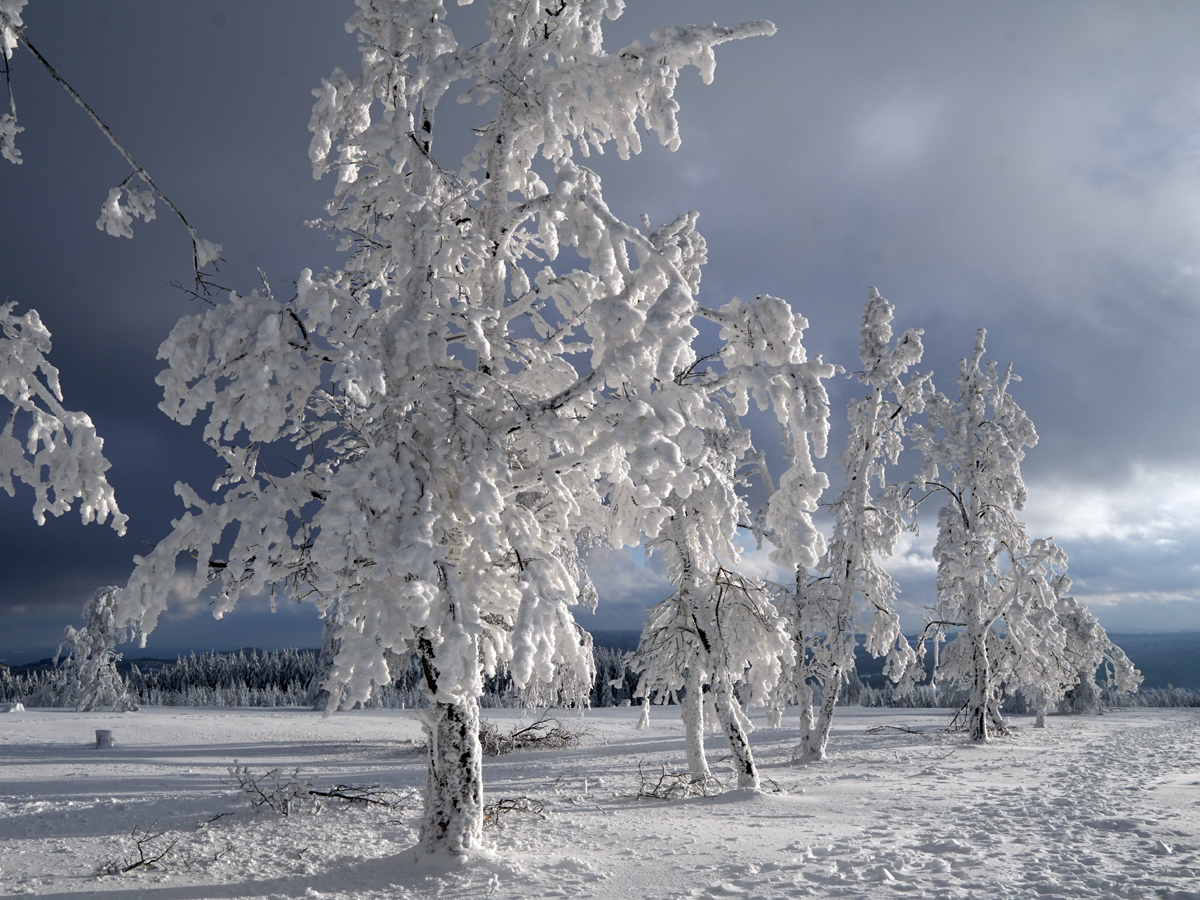 Ganz oben im Sauerland ist noch alles dick gefroren. Die Äste hängen so voller Eis und Schnee, dass sie die Last nur mit Mühe tragen können. Lausig kalt ist es und schön anzusehen.
