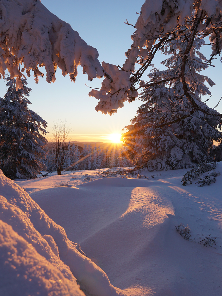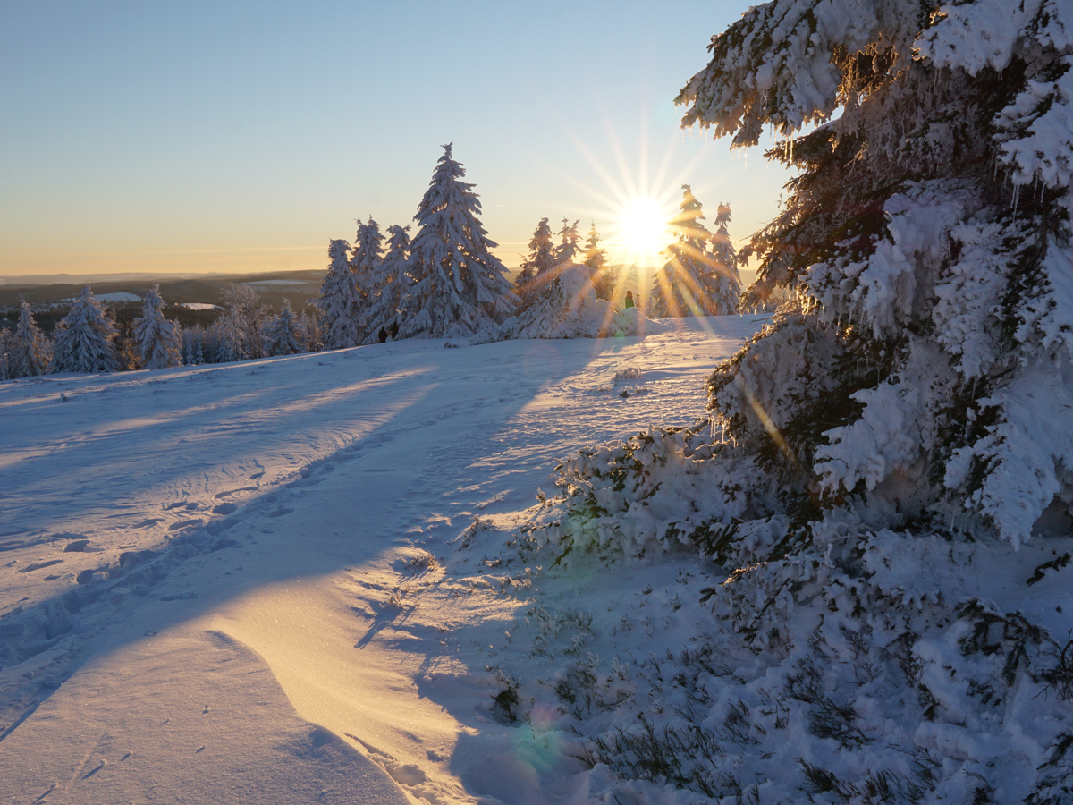 … ist mindestens genau so schön, nur ist man dann meist nicht so allein dort oben … es gibt schon Spuren im Schnee. Aber an dem letzten Wochenende war das Wetter so überwältigend schön, dass ich mir den Sonnenuntergang natürlich auch nicht entgehen lassen konnte.