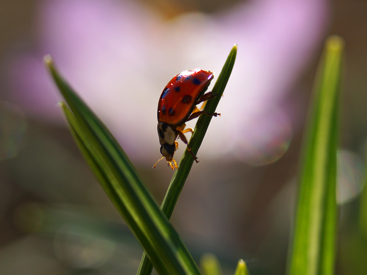 Es ist schon ein bisschen her, aber diese Bilderserie muss noch mit hier rein. Ein kleiner Marienkäfer krabbelte auf einem Krokus in meinem Garten herum.