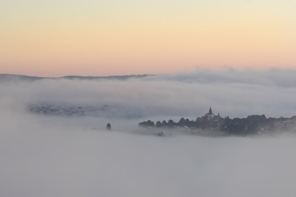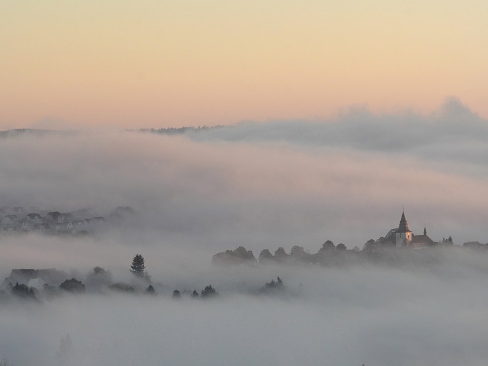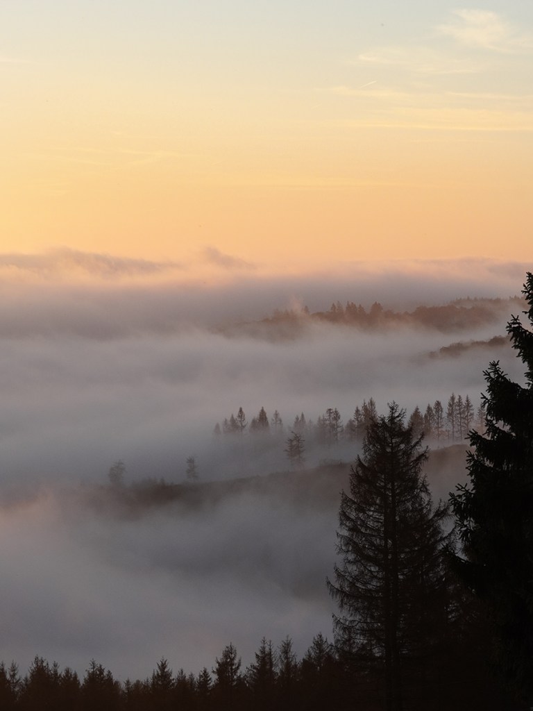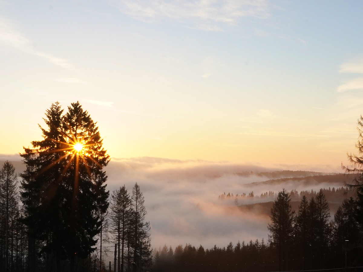 Das sind die Herbstmorgen, auf die ich mich jedes Jahr wieder freue 🙂 Nebel, Morgenrot und kleine Inseln, die oben aus dem Nebel herausschauen. An diesem Morgen stand ich an der Winterberger Bobbahn und konnte mich nicht sattsehen.