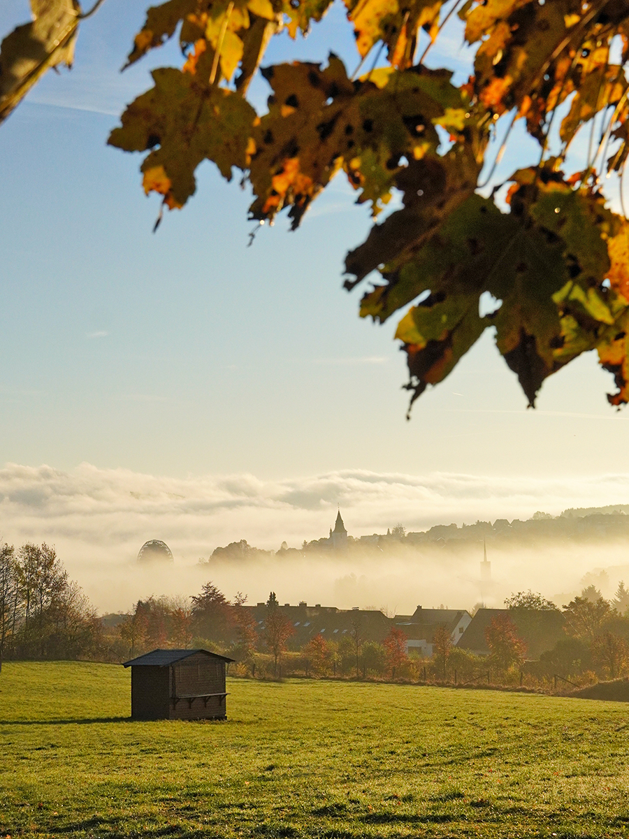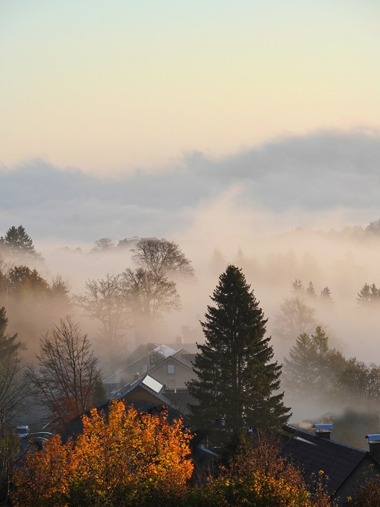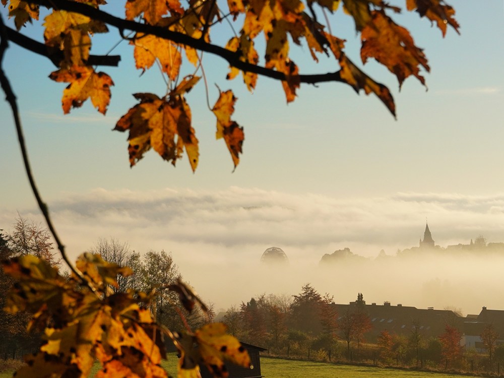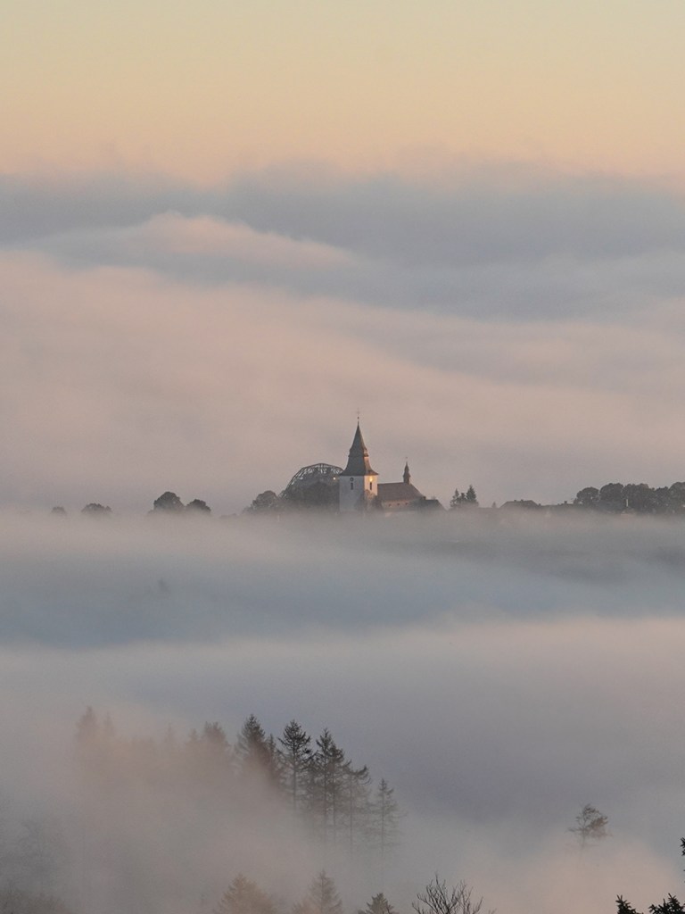 Das sind die Herbstmorgen, auf die ich mich jedes Jahr wieder freue 🙂 Nebel, Morgenrot und kleine Inseln, die oben aus dem Nebel herausschauen. An diesem Morgen stand ich an der Winterberger Bobbahn und konnte mich nicht sattsehen.