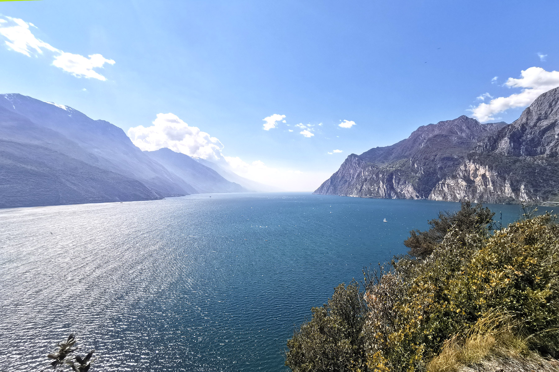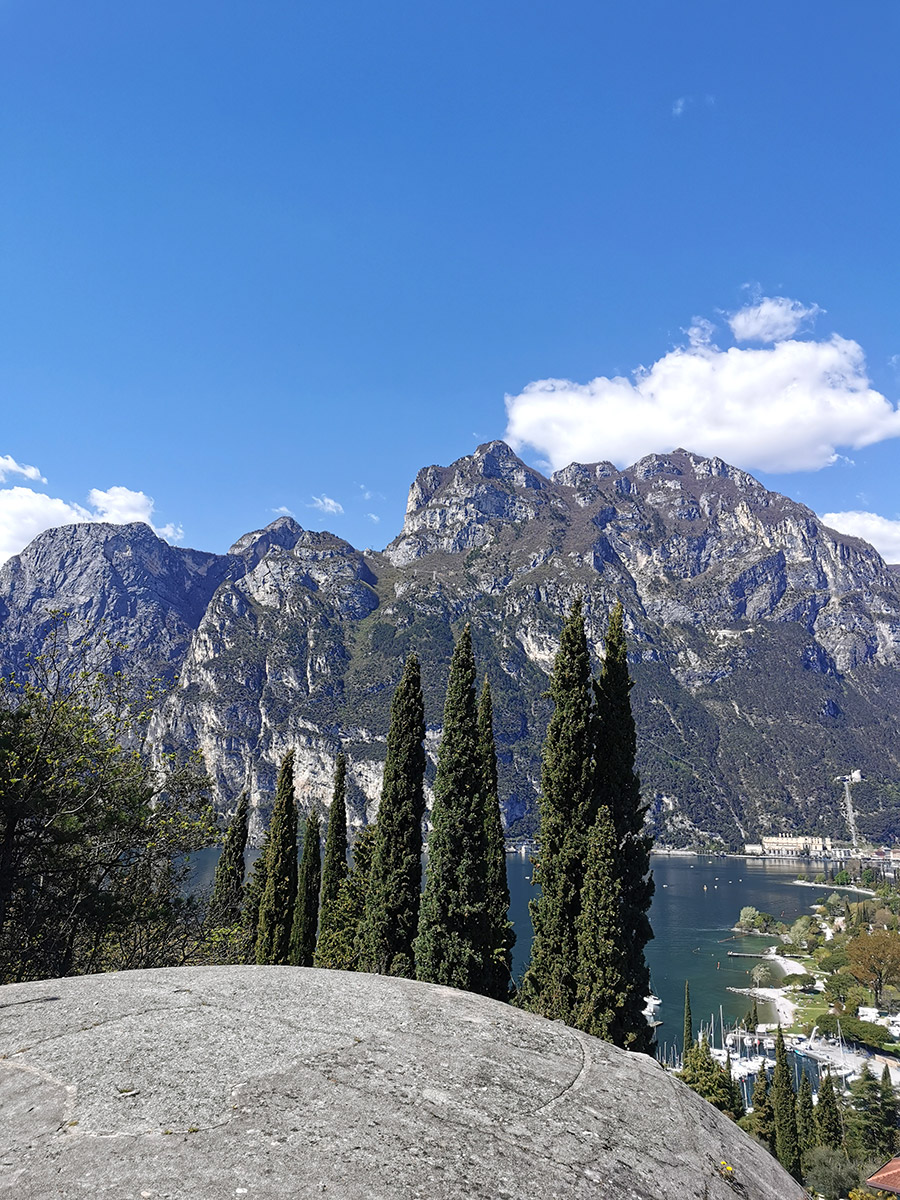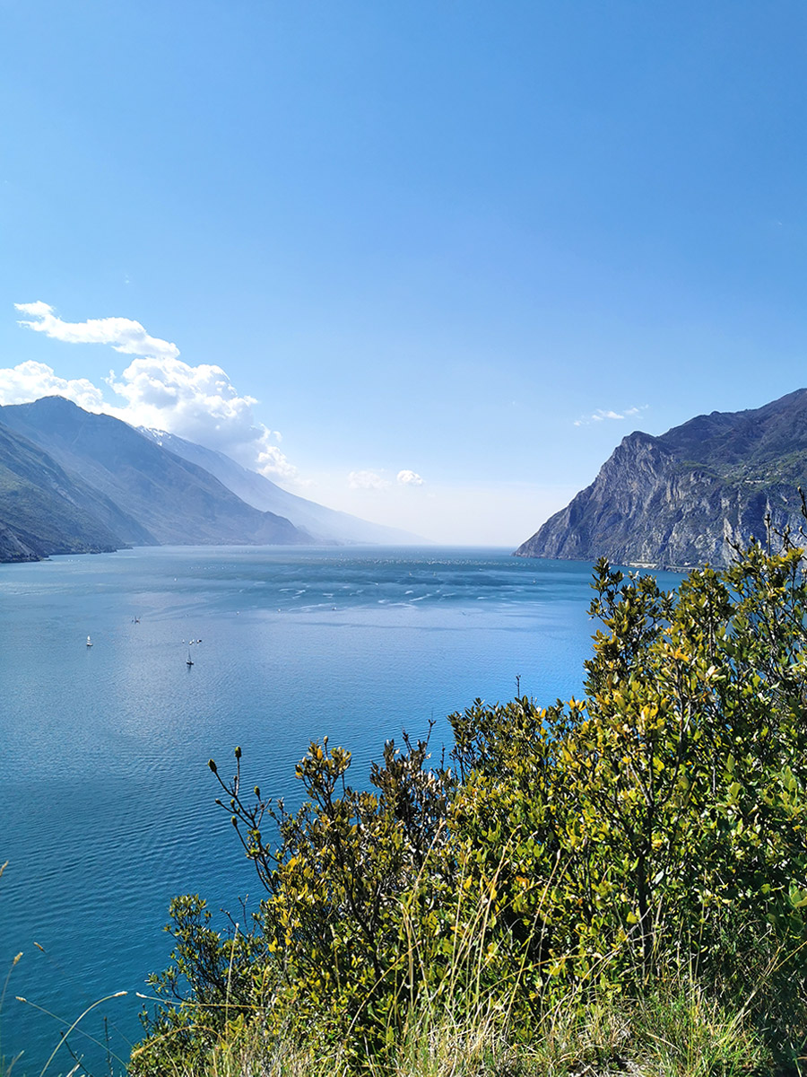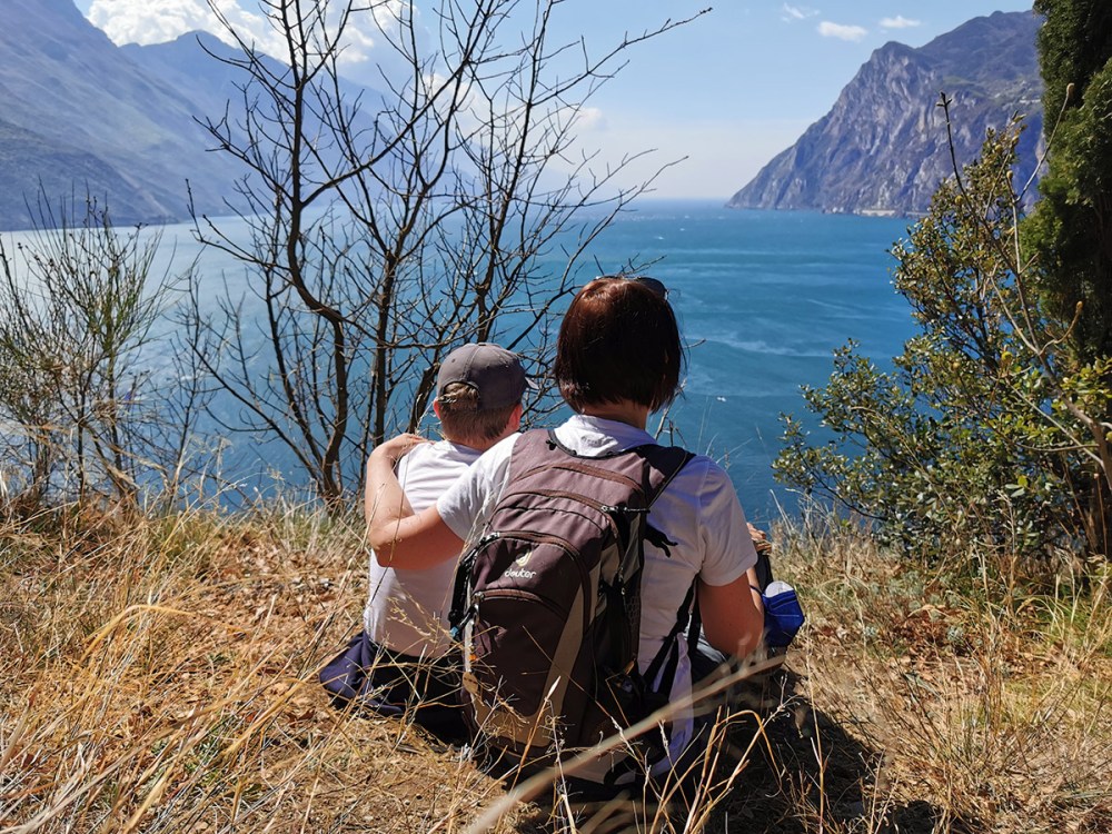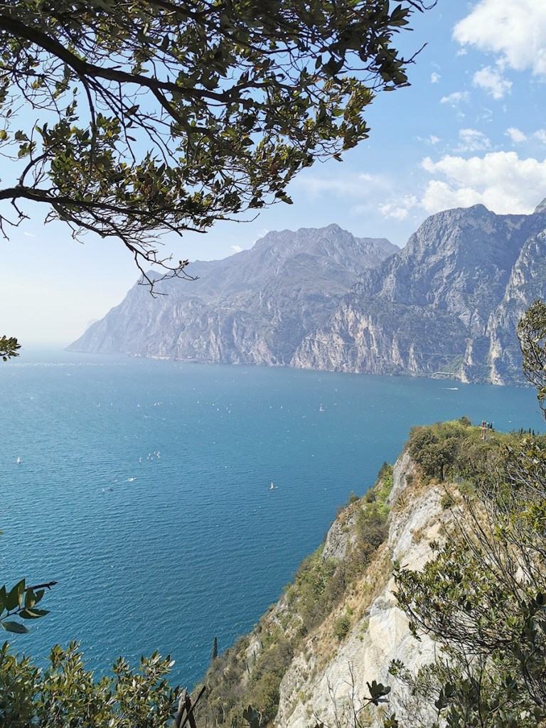 Wir schafften den Weg bis zum Gipfelkreuz, aber auch vorher gibt es super Aussichtspunkte. Während wir einige Kilometer schwitzend bei schon sehr warmen Wetter nach oben gewandert waren, erwartete uns oben die erfrischende „Ora“. Die Ora ist der bekannteste Wind am Gardasee.