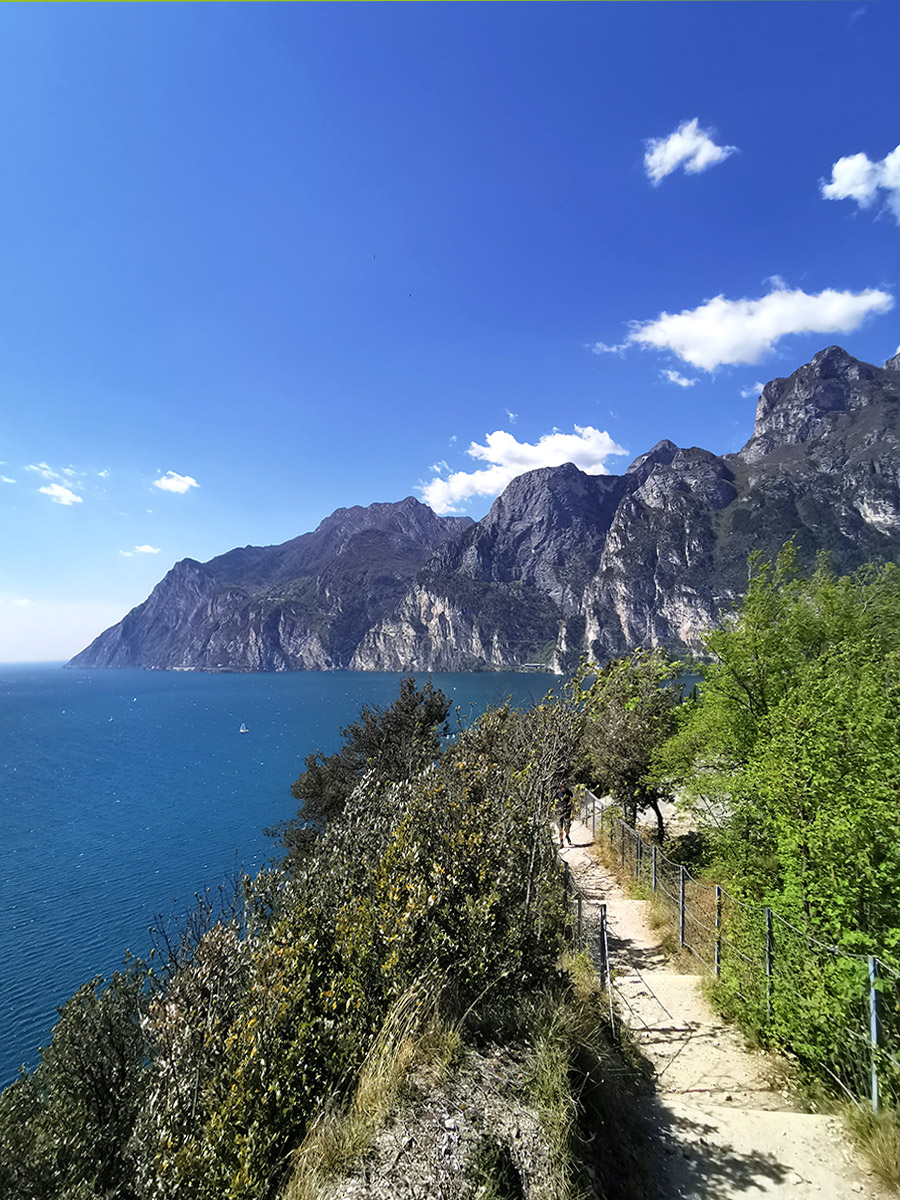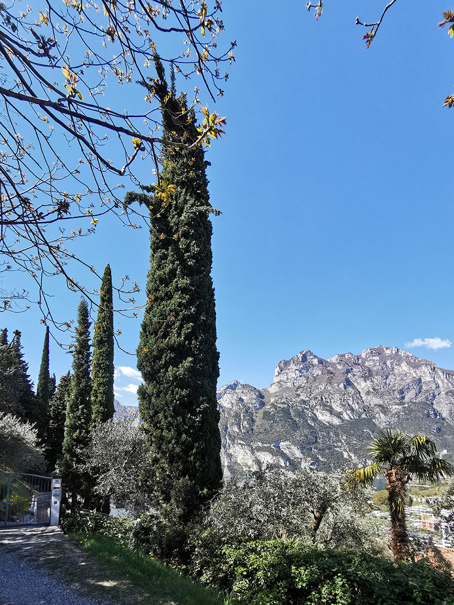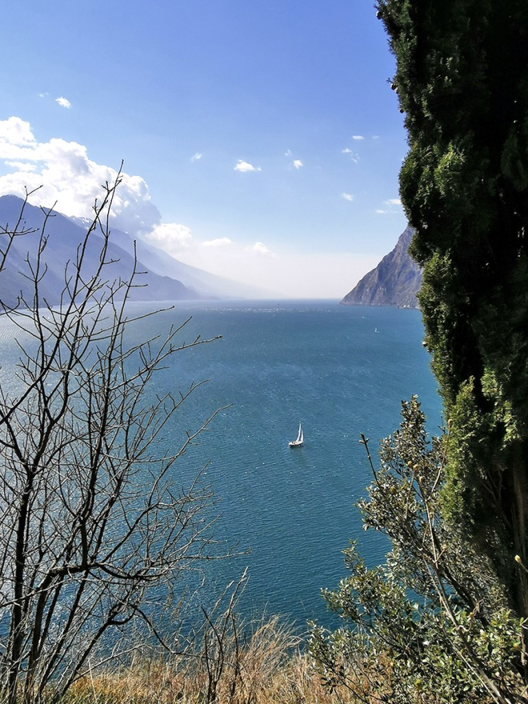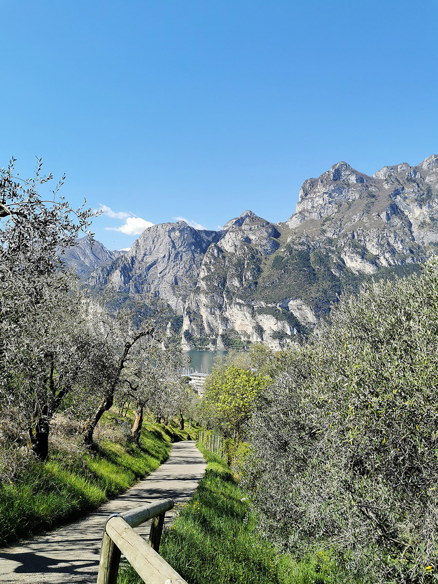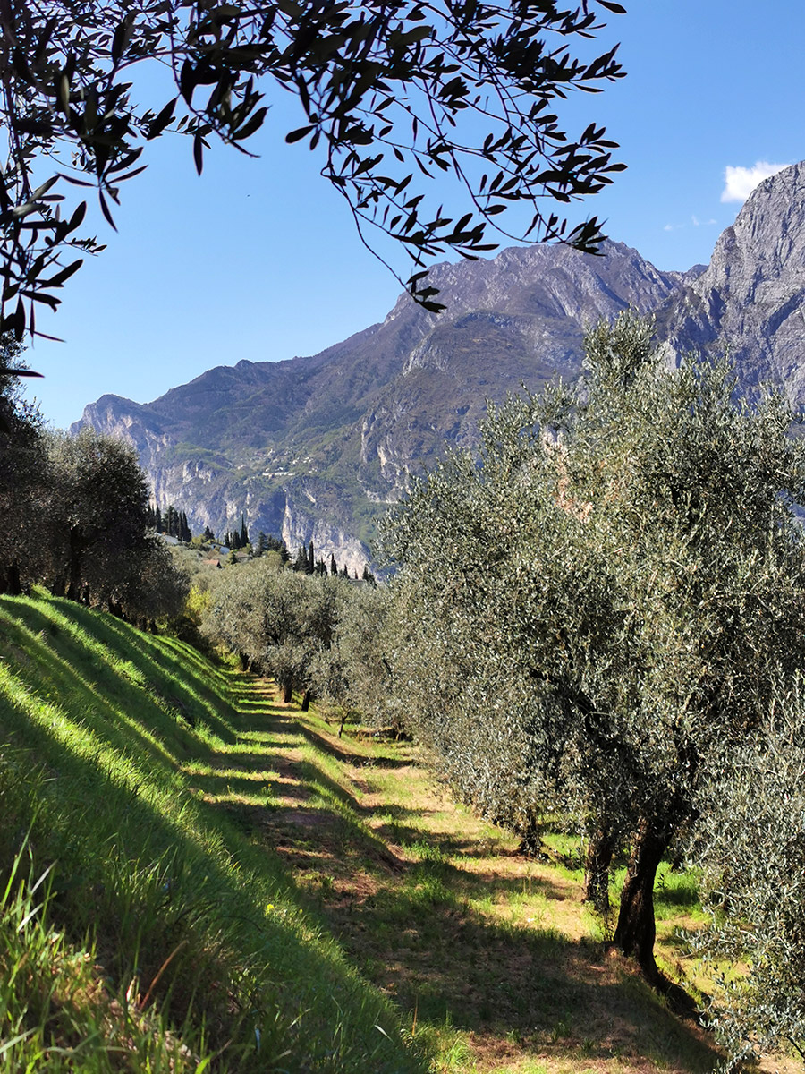 Diesen Berg konnten wir von unserer Unterkunft aus erklimmen. Der Weg führte uns durch Olivenhaine immer weiter nach oben. Man hat auf dieser Wanderung immer wieder wunderbare Ausblicke auf den Gardasee, da der Monte Brione zur Seeseite hin fast waagerecht abfällt.