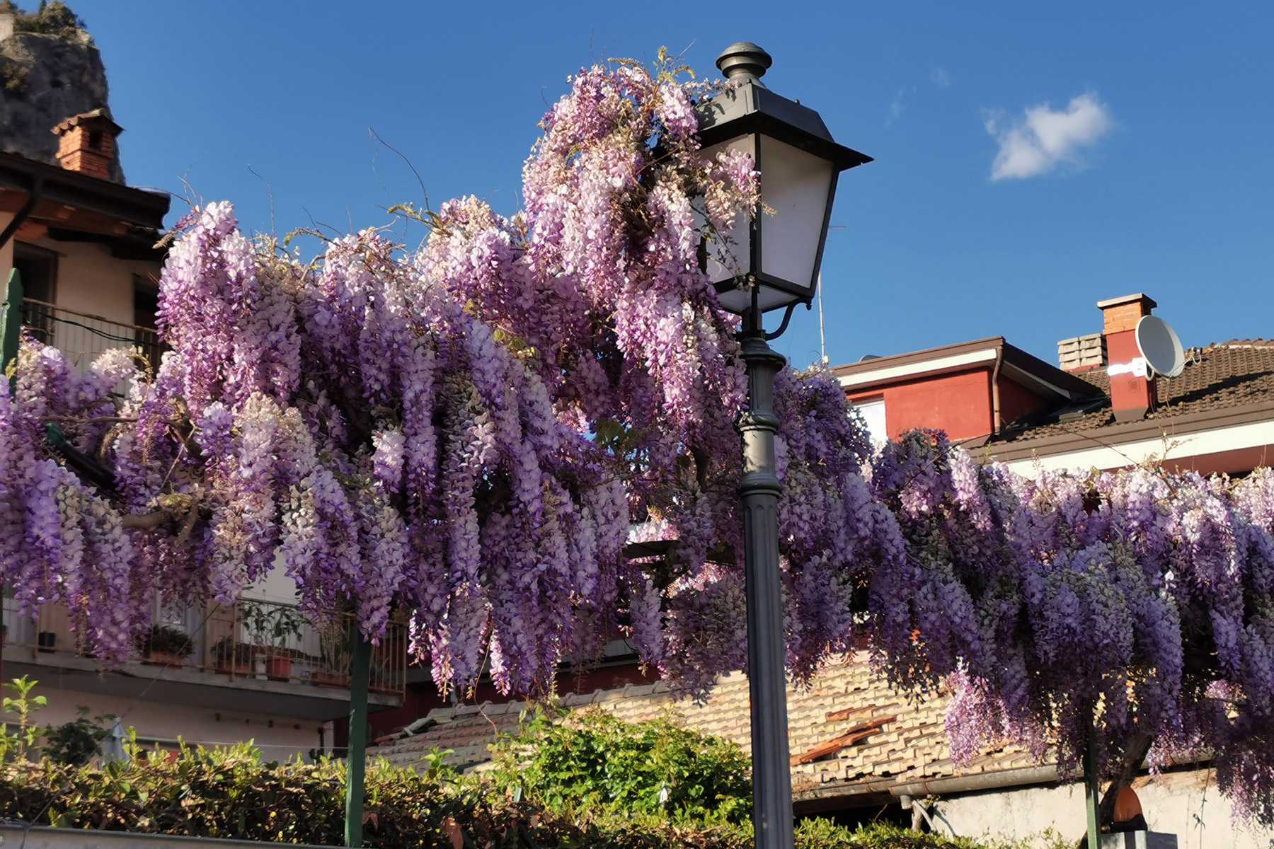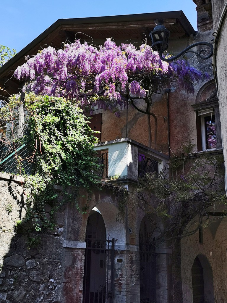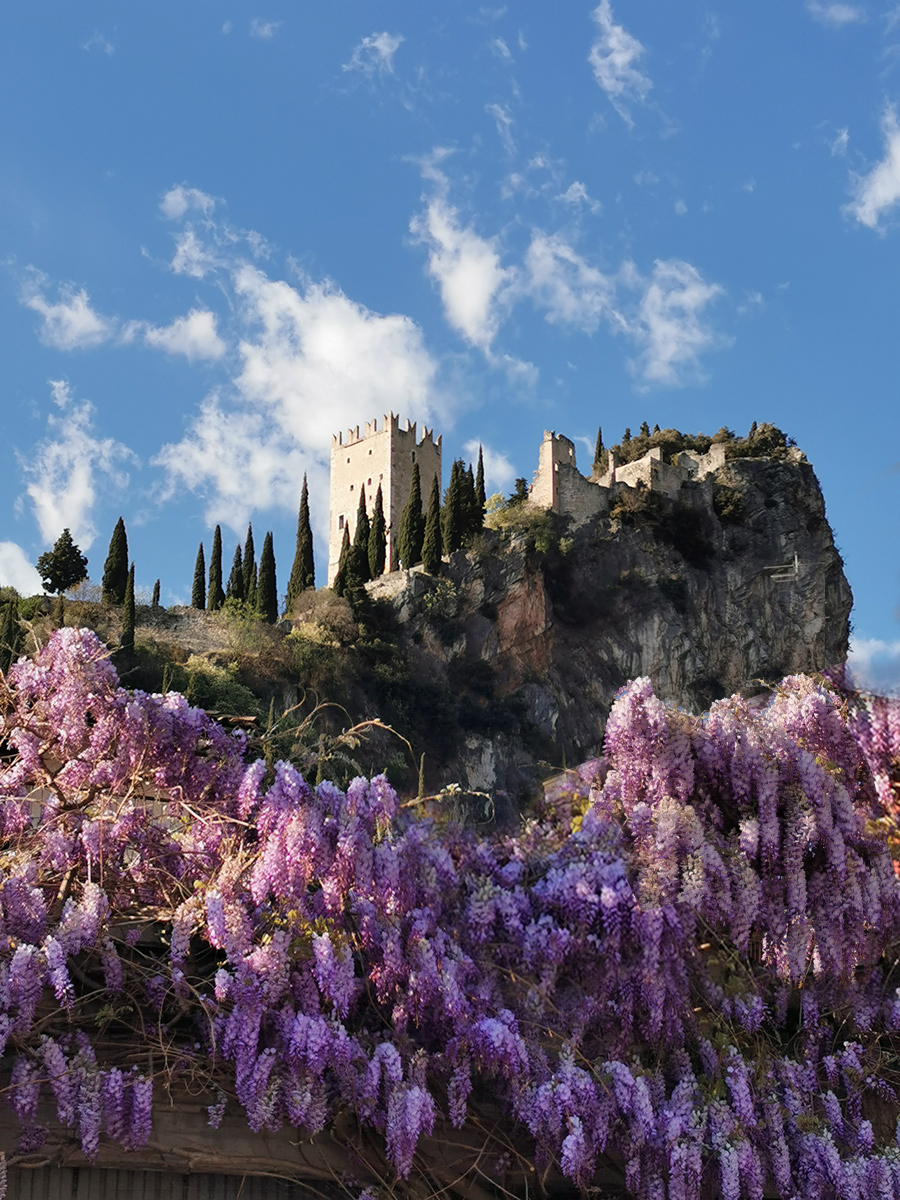 Was mir so gut gefiel, war der Blauregen, den man immer wieder antraf. In Arco (wieder im Norden) bildete er einen schönen Vordergrund für das Castello die Arco.