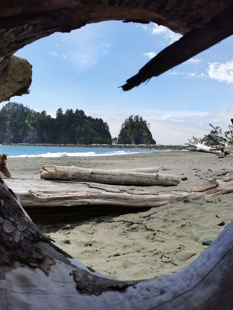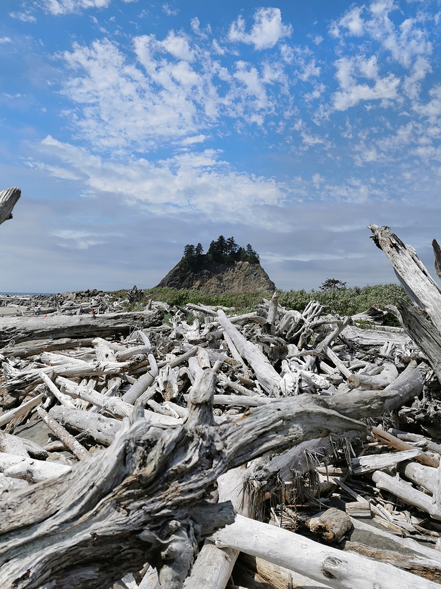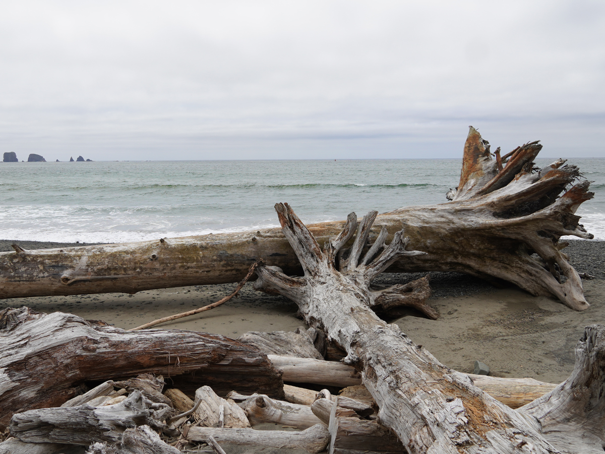 Ich war völlig fasziniert von diesem Ort. Der Strand ist sehr wild und voller angeschwemmter Riesenbäume. Während wir den ganzen Tag durch herrlichen Sonnenschein gefahren waren, kam ungefähr 10 Meilen vor La Push eine Nebelwand.