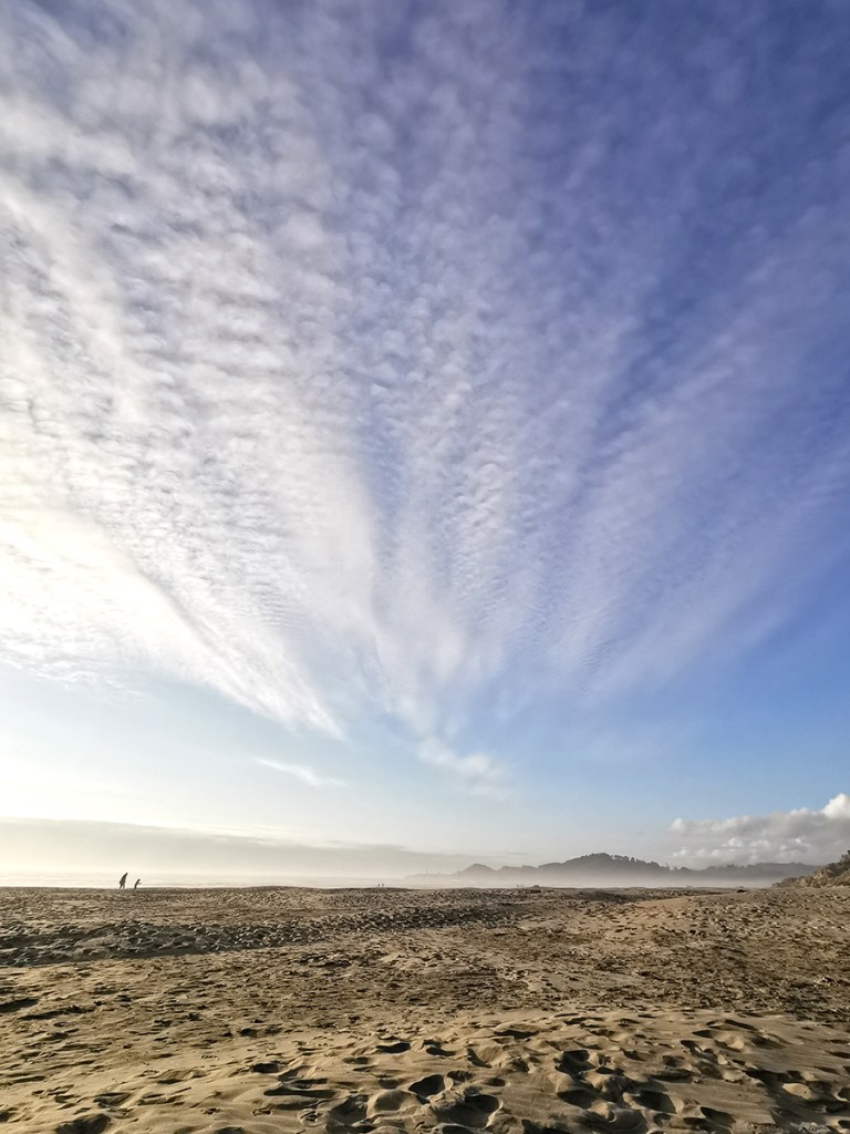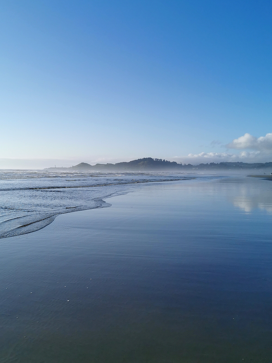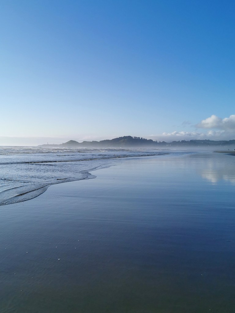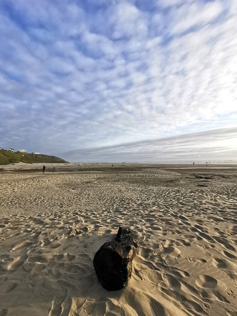 Im Sommer hängt an der gesamten Westküste oft der Nebel fest und nur 4-5 Meilen weiter ins Landesinnere scheint die Sonne. Wir hatten aber Glück: Als wir uns unserer Unterkunft in Newport näherten, riss der Himmel auf und wir konnten uns noch einen schönen Strand-Nachmittag machen.