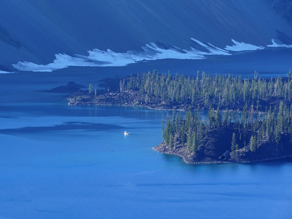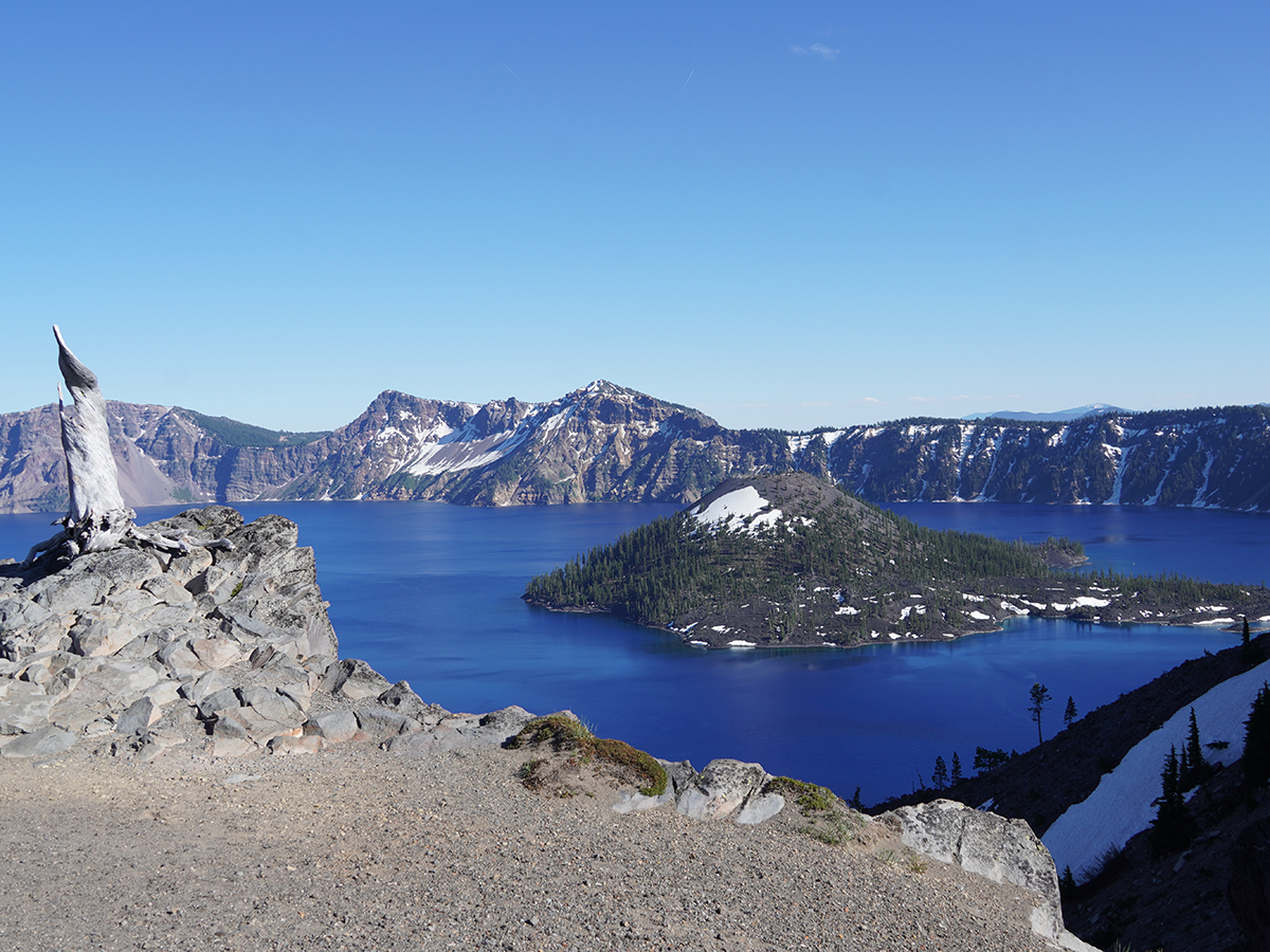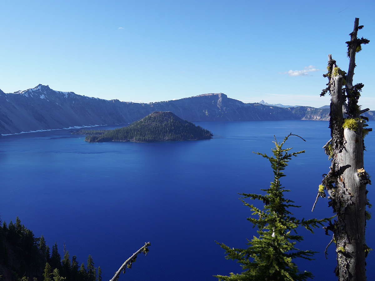 Der Crater Lake in Oregon ist einer meiner absoluten Lieblingsorte in USA. Dieser ist ein Kratersee des Vulkans Mount Mazama und zeichnet sich durch seine ungewöhnlich tiefblaue Farbe aus. Der See entstand durch die Füllung der Caldera mit Regenwasser. Innerhalb des Sees ist eine kleine Insel zusehen … ein weiterer kleinerer Vulkankegel.