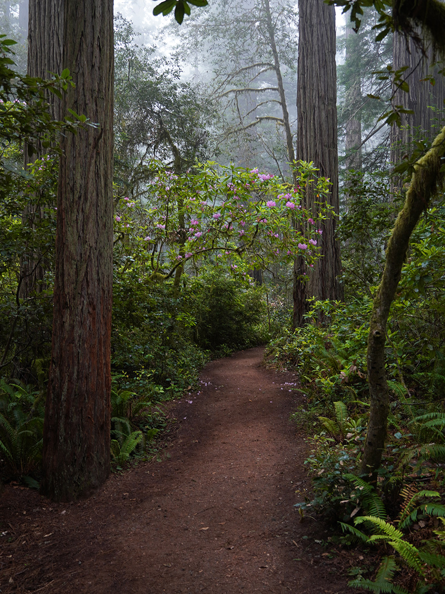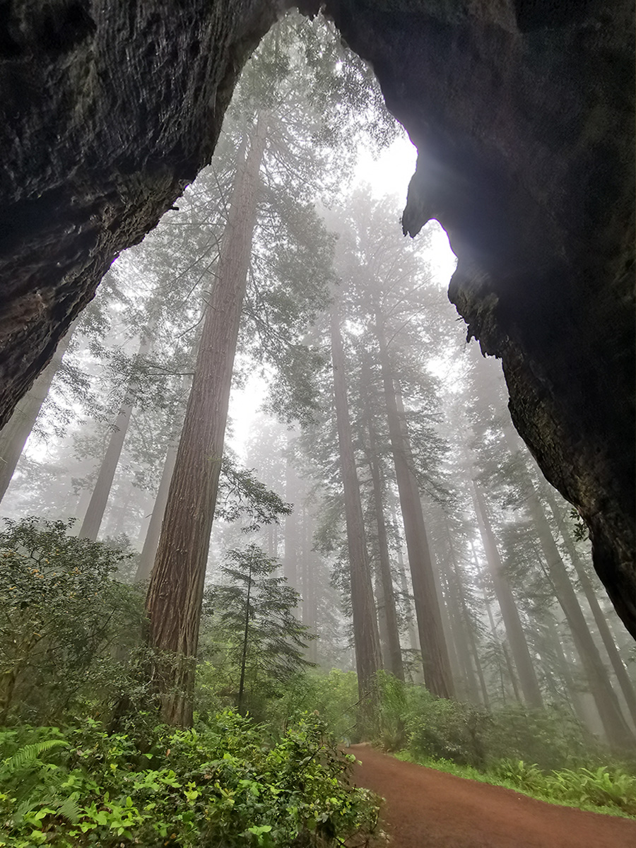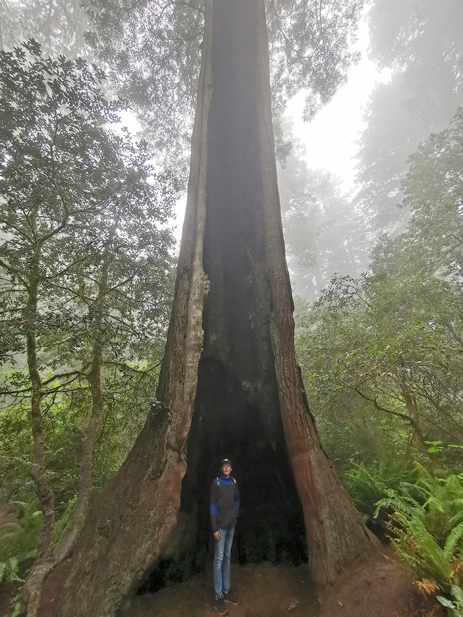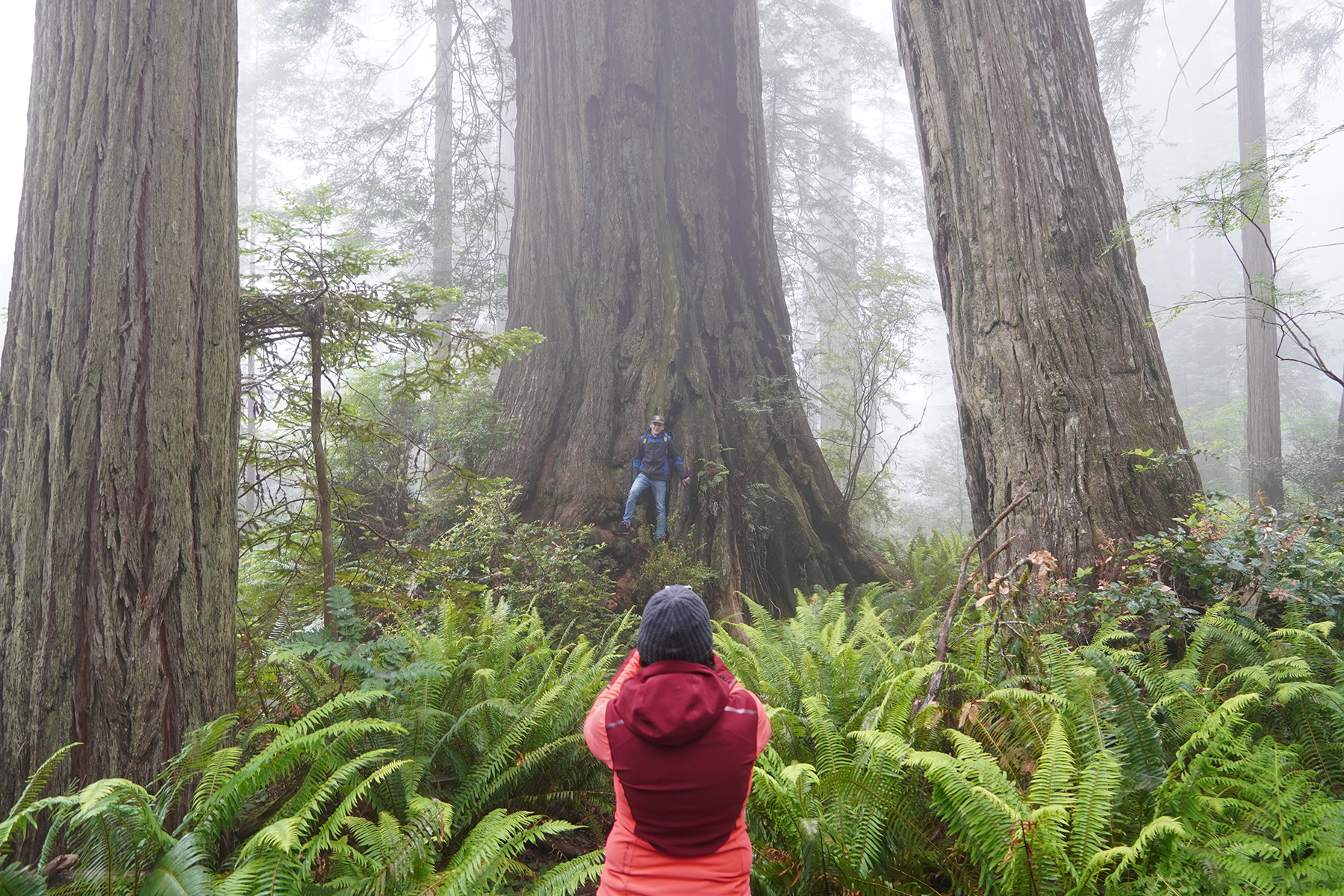 Am nächsten Tag wanderten wir den „Lady Bird Johnson Grove Trail“. Da dieser näher an der Küste liegt, war er komplett im Nebel.