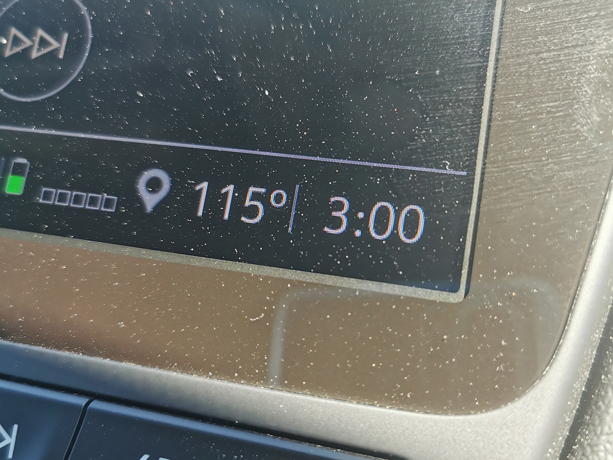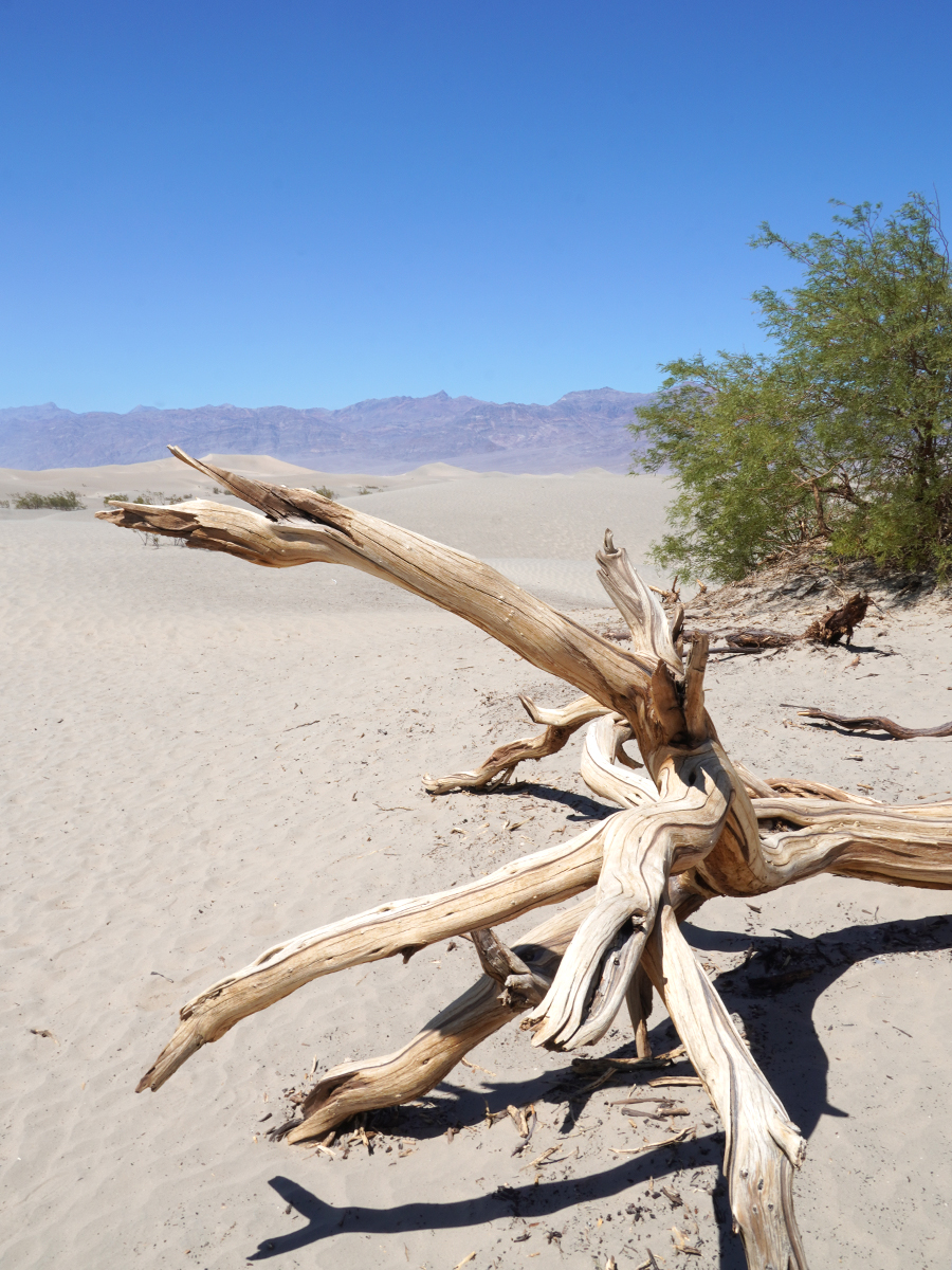 Es ist schon eine faszinierende Gegend, aber absolut ungeeignet für einen Sauerländer 🙂 Ich bin nur einmal kurz ausgestiegen, um die schönen Sanddünen zu fotografieren und hatte dabei das Gefühl, dass mir einer einen heißen Fön ins Gesicht hält und meine Augäpfel anfangen zu schrumpfen :-). Bei 47 Grad geht bei mir nichts mehr, aber aus dem klimatisierten Auto ließ sich diese lebensfeindliche Gegend gut bewundern.