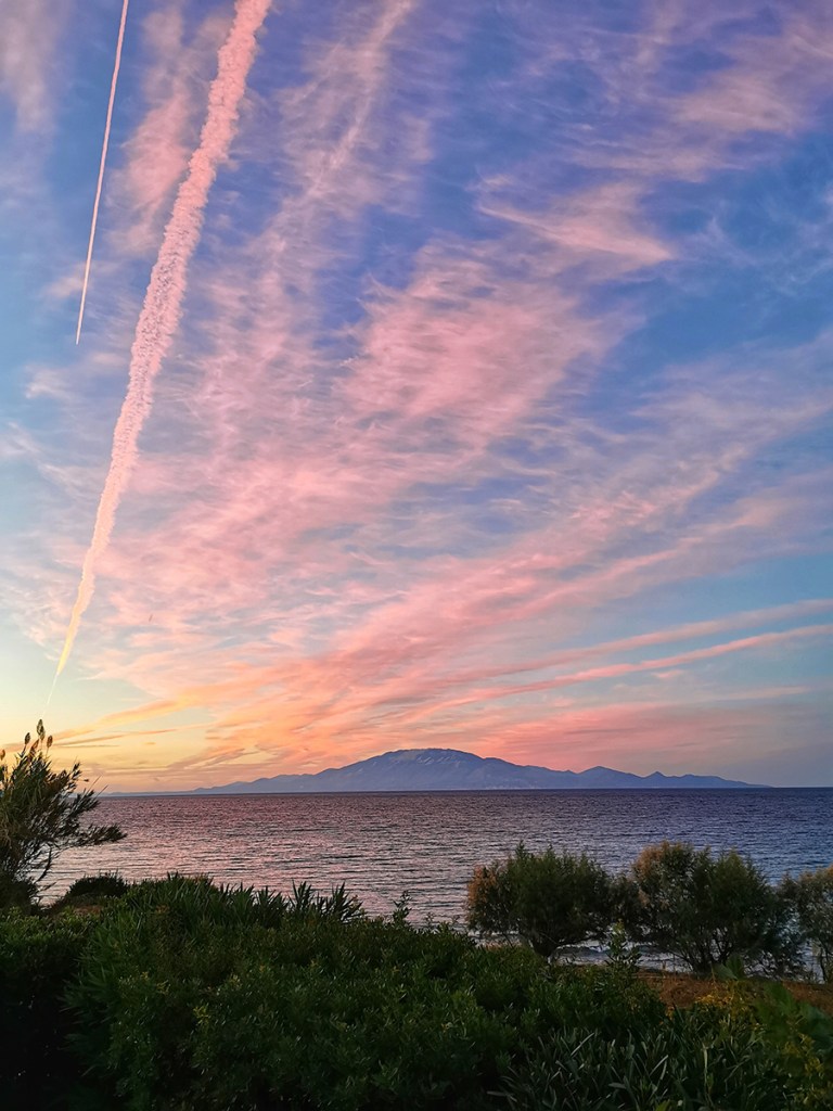 Kalimera auf Zakynthos. 🙂 So sah ein ganz normaler Urlaubstag dort aus. Toller Sonnenaufgang, Meeresblick aus dem Schlafzimmer, eine Runde Yoga und dann alles entdecken, was schön ist. Bis der Abend kommt mit einem tollen Abendrot. Kalispera.