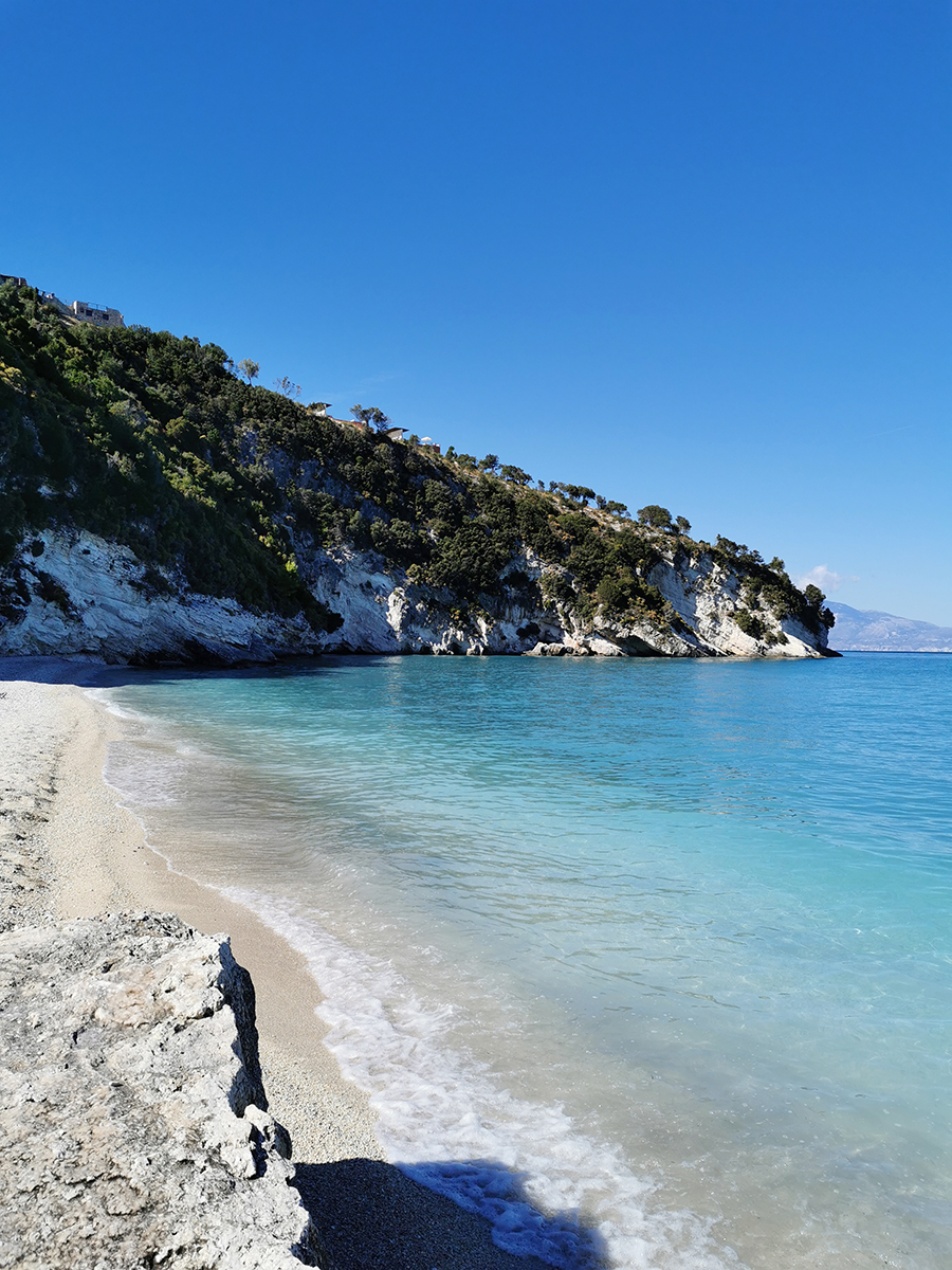 Ein paar Tage später besuchten wir den Little Xigia Beach und die daneben liegende Bucht Pelagaki. Little Xigia fand ich schön, allerdings gab es hier ein paar Gänse, die sich immer wieder auf die Touristen stürzten und alles futterten, was sie vor den Schnabel kriegten :-D.