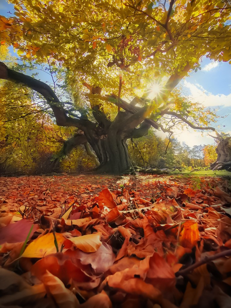 Wir fuhren in den Hutewald Halloh in der Nähe von Bad Wildungen, in welchem wir eine Runde unter herrliche herbstlichen Hütebuchen gedreht haben. In Hutewälder wurden in den vergangenen Jahrhunderten Nutztiere getrieben, die hierihr Futter fanden. Es ist nur ein kleiner Wald und er ist genau so gelassen worden, wie er ist. Die Bäume haben teilweise viele Äste verloren und wachsen in alle erdenklichen Richtungen, aber gerade das macht diesen Wald so märchenhaft!