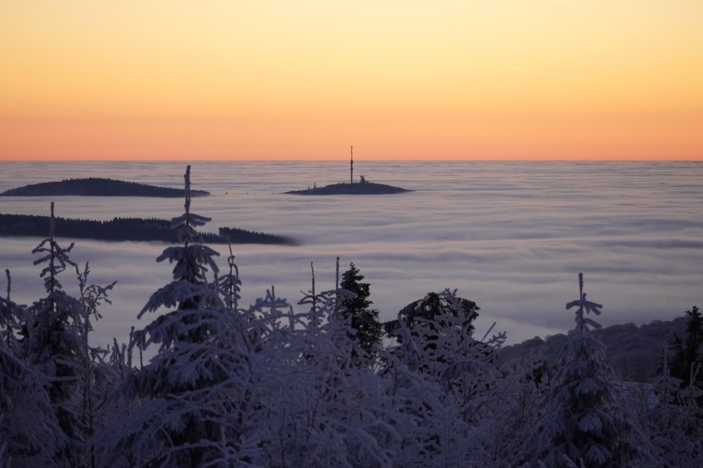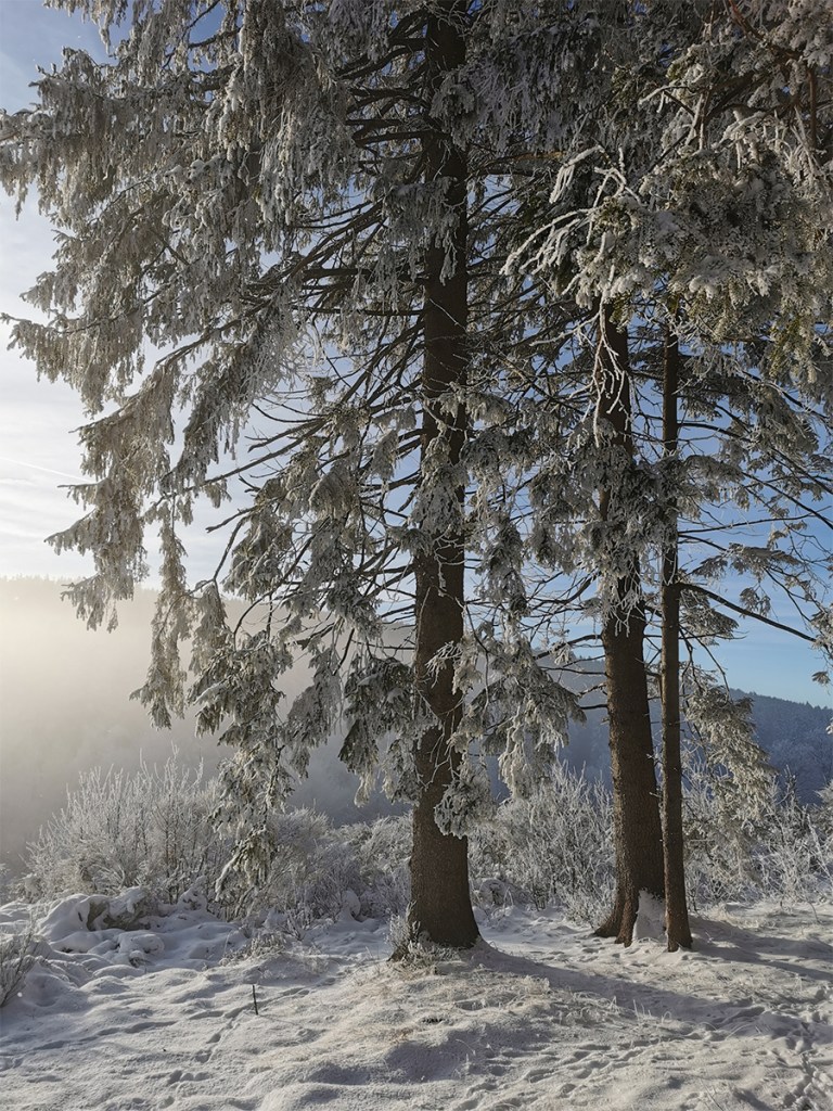 Und dann hatten wir mal wieder eine Inversionswetterlage vom Feinsten. Während am Tag zuvor der Kahle Asten noch dick voller Rauhreif hing, war dort am nächsten Morgen +1Grad, während im Tal -10 Grad herrschte. Da musste man schon weiter unten im Tal gucken, dass man noch ein paar schneebedeckte Bäume fand.