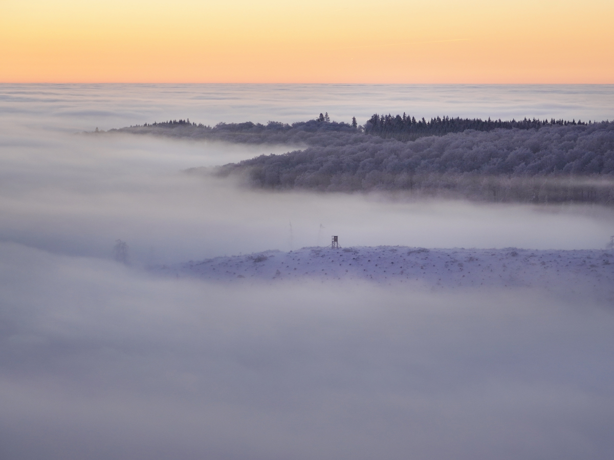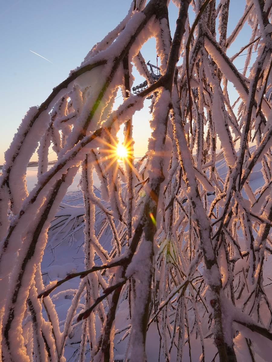 Und dann hatten wir mal wieder eine Inversionswetterlage vom Feinsten. Während am Tag zuvor der Kahle Asten noch dick voller Rauhreif hing, war dort am nächsten Morgen +1Grad, während im Tal -10 Grad herrschte. Da musste man schon weiter unten im Tal gucken, dass man noch ein paar schneebedeckte Bäume fand.