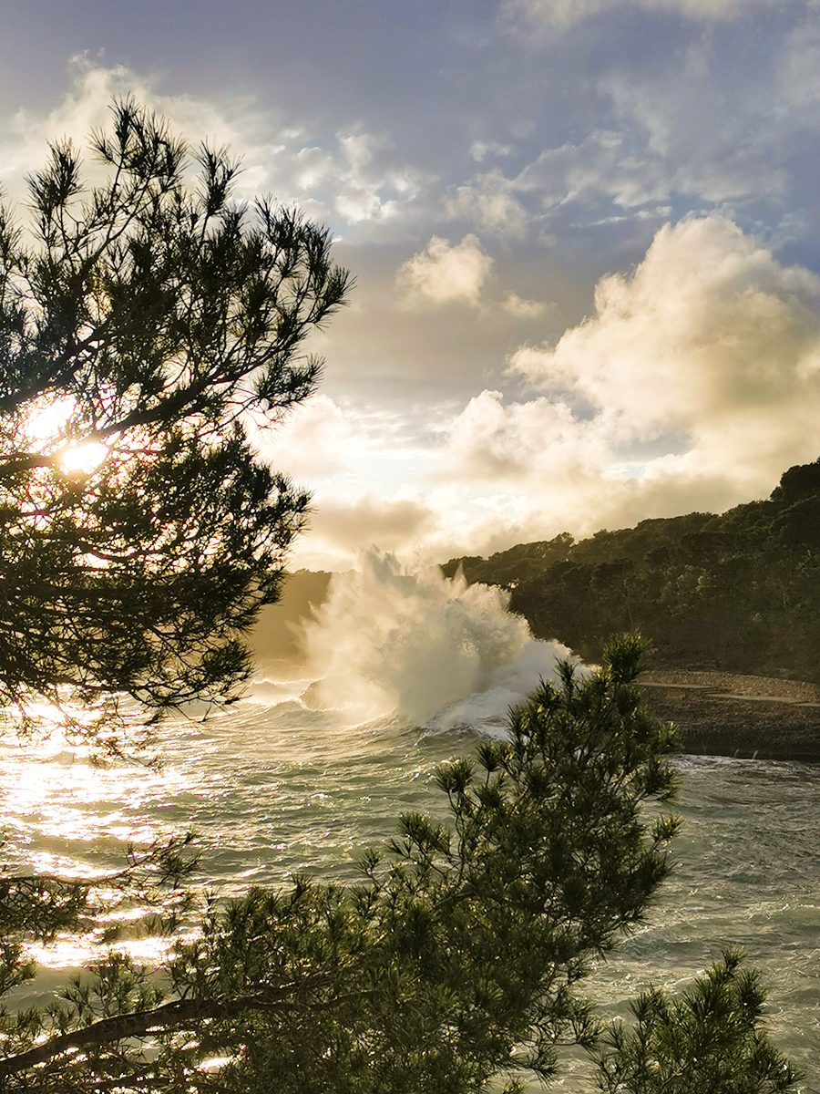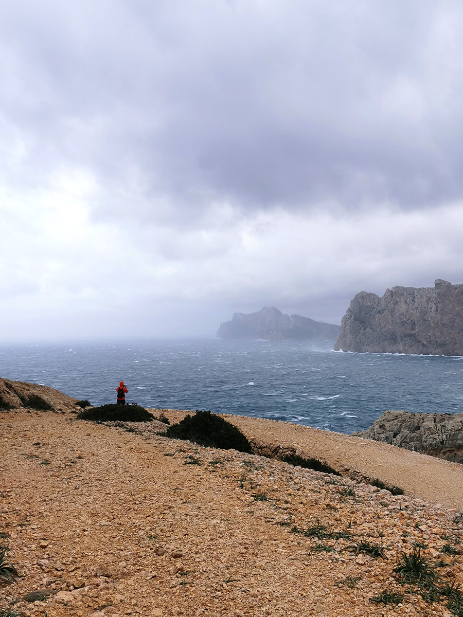 Ich liebe ja Sturm. Und auf Mallorca kann es sehr stürmisch werden! Zwei Tage lang fegte ein Wahnnsinnssturm mit heftigemRegen über die Insel. Wir beschlossen wandern zu gehen, da der Regen zumeist nur nachts runterkam. Aber bei einer Wanderung auf den Punta de Coves Blanques im Norden der Insel mussten wir umkehren, weil es einfach zu gefährlich war und der Wind einen umzupusten drohte. Streckenweise konnten wir uns nur geduckt voran bewegen. War aber trotzdem schön. Wir haben dann die einfache Route genommen.