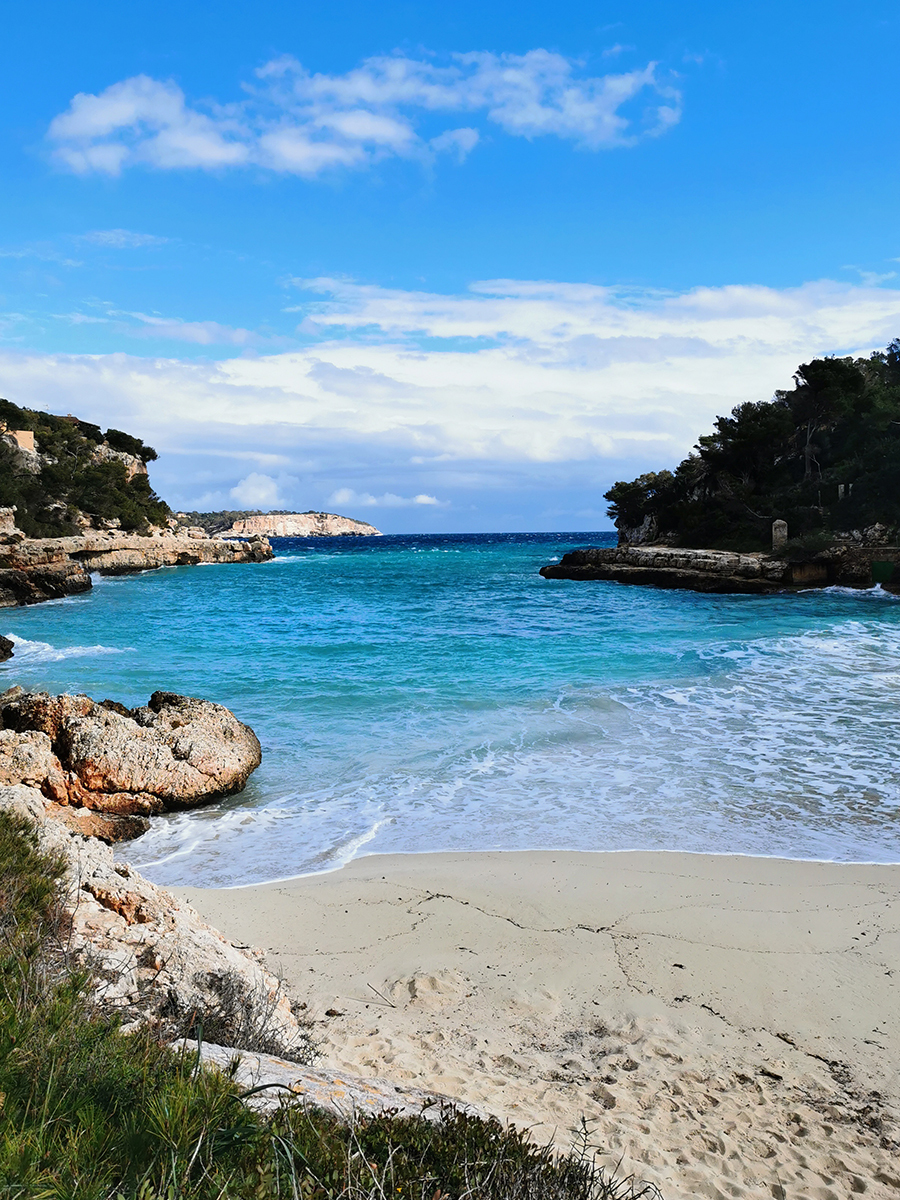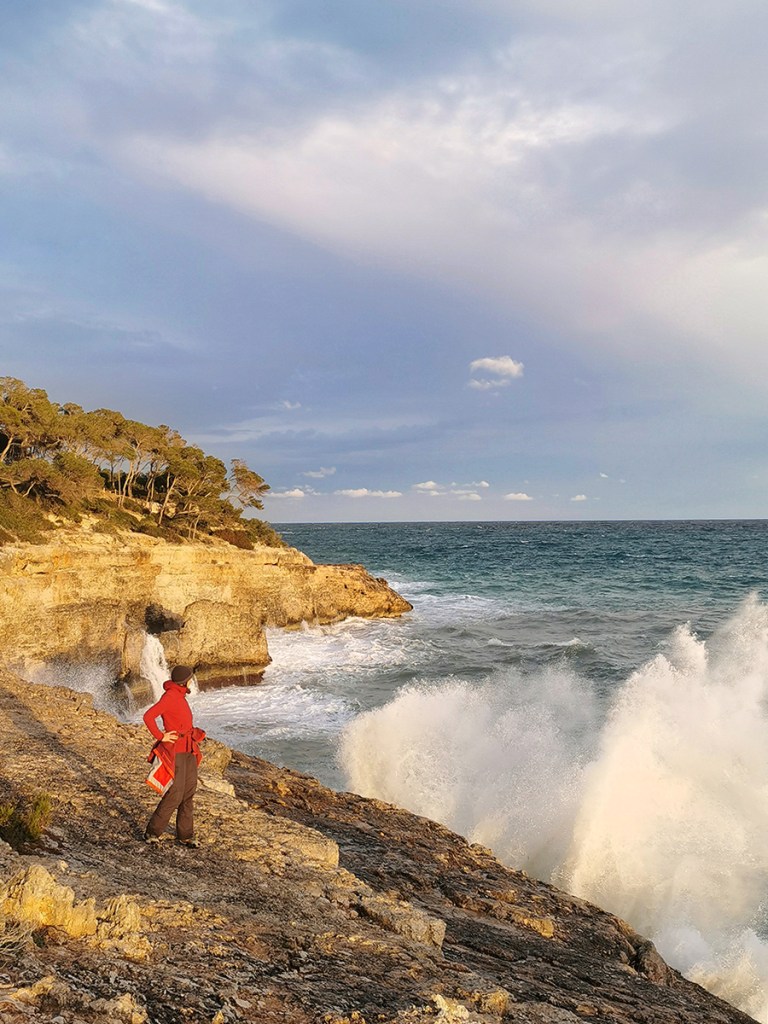 Am nächsten Tag sind wir in den Süden zur Cala Mondrago gefahren, um dort zu wandern. Da hat mich direkt die Gischt einer Riesenwelle erwischt, so dass ich von oben bis unten nass war und in der Hose meines Mannes weiterlaufen musste, der dann in seiner Badehose gewandert ist 😀