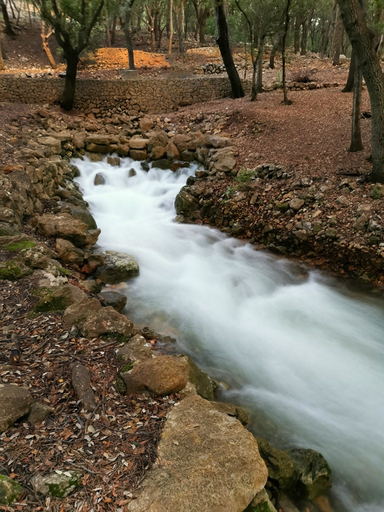 Und ein besonderes Highlight erwartete uns am letzten Tag: Durch die starken Regenfälle in den Bergen des Tramuntanagebirges entsprangen auf dem Landgut der Finca Es Gabellí bei Campanet wie aus dem Nichts sprudelnde Wasserquellen dem Erdboden, mitten in einem Steineichenwald.