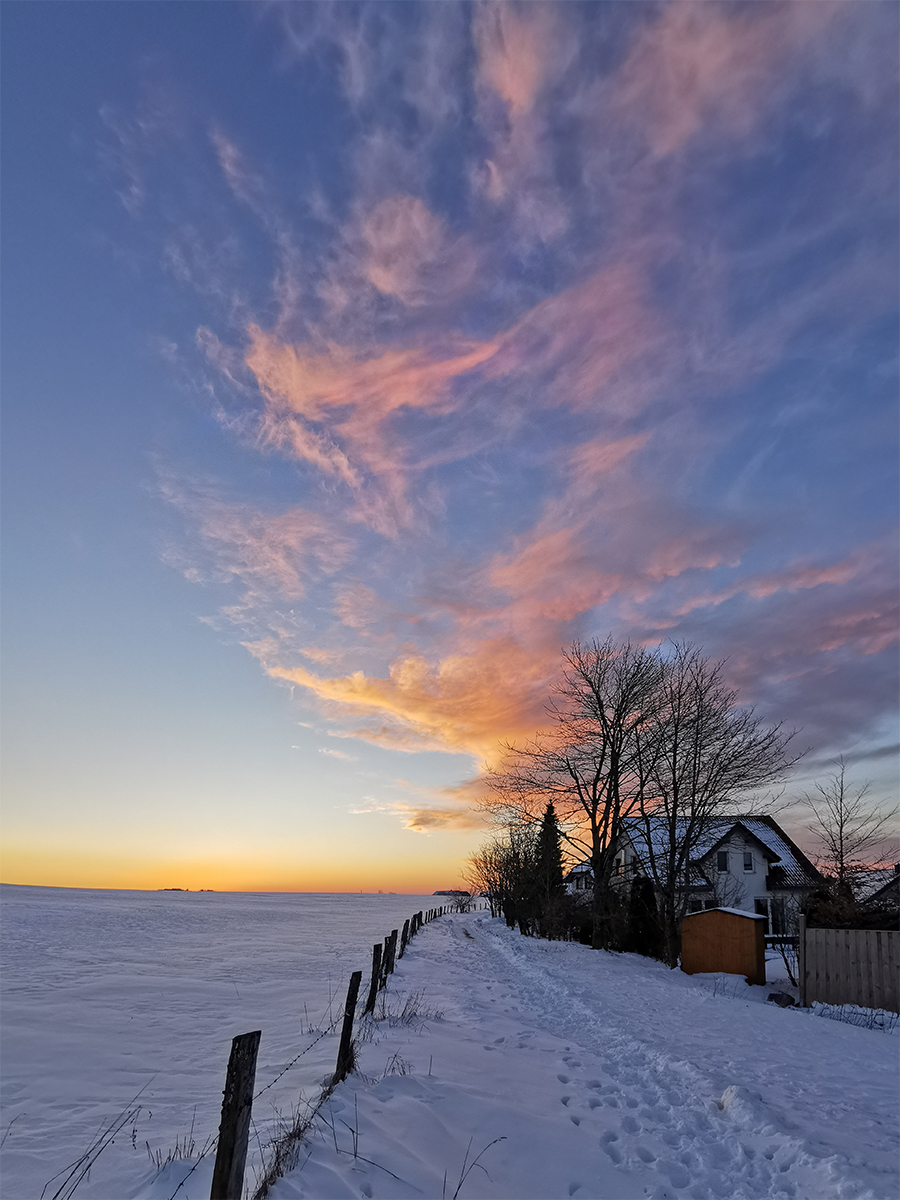 Landschaft, unterwegs, Winter Zaubermorgen Verfasst von PEPIX am März 6, 2023 So lass ich mir den späten Winter gefallen! Was für ein Wahnsinns-Morgenrot hinter dem Haus! Ähnliche Beiträge