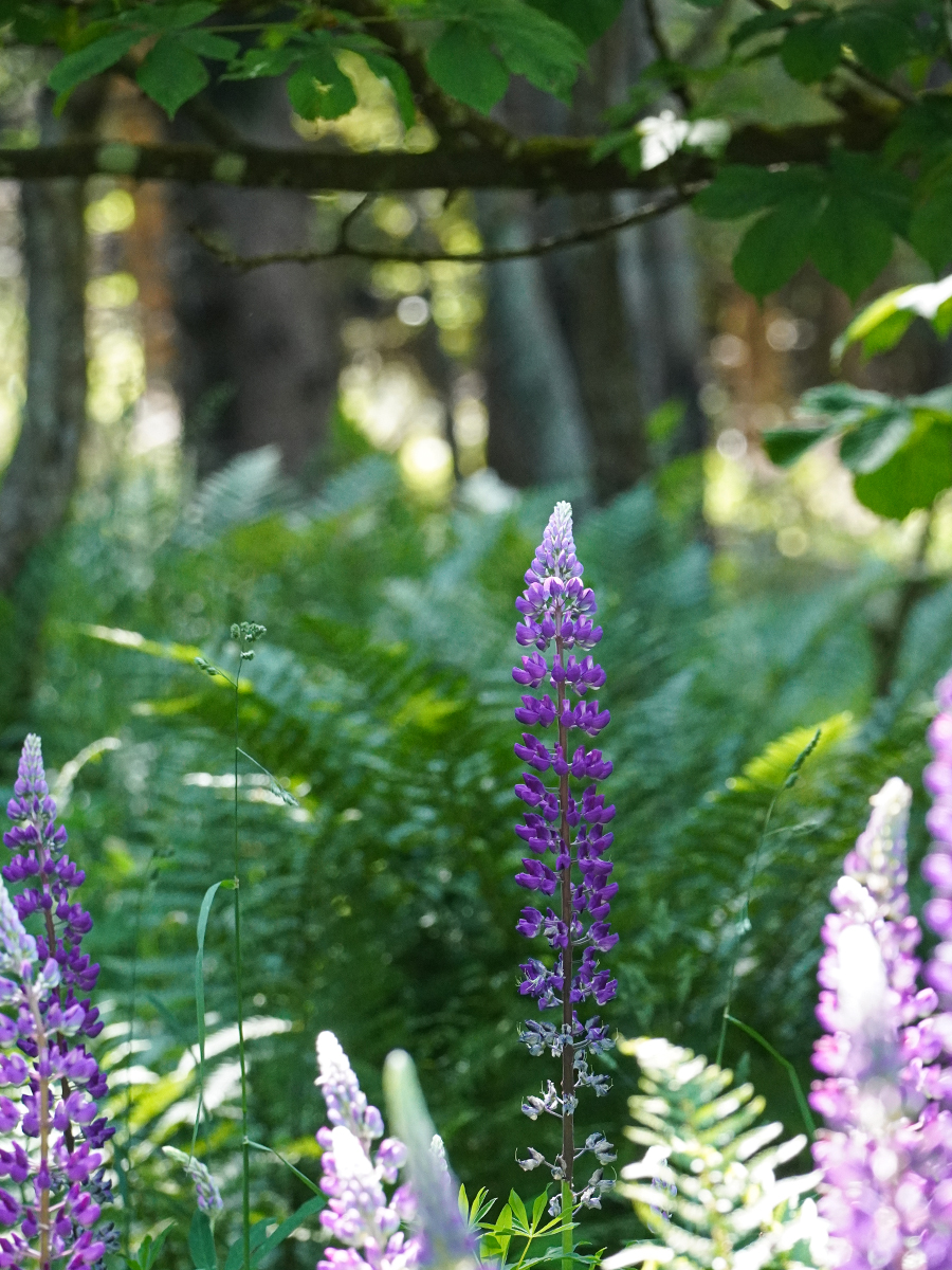 Auch wenn der Sommer schon wieder viel zu trocken ist, ist es im Wald ganz wunderbar. Neulich hab ich beim Radeln eine wahrhaft schöne Märchenwiese mitten im Wald entdeckt, auf der sich Lupinen und Farn abwechselten. Wunderschön verwunschen!