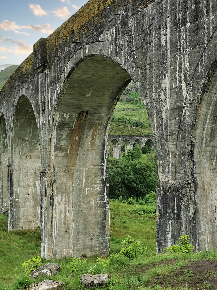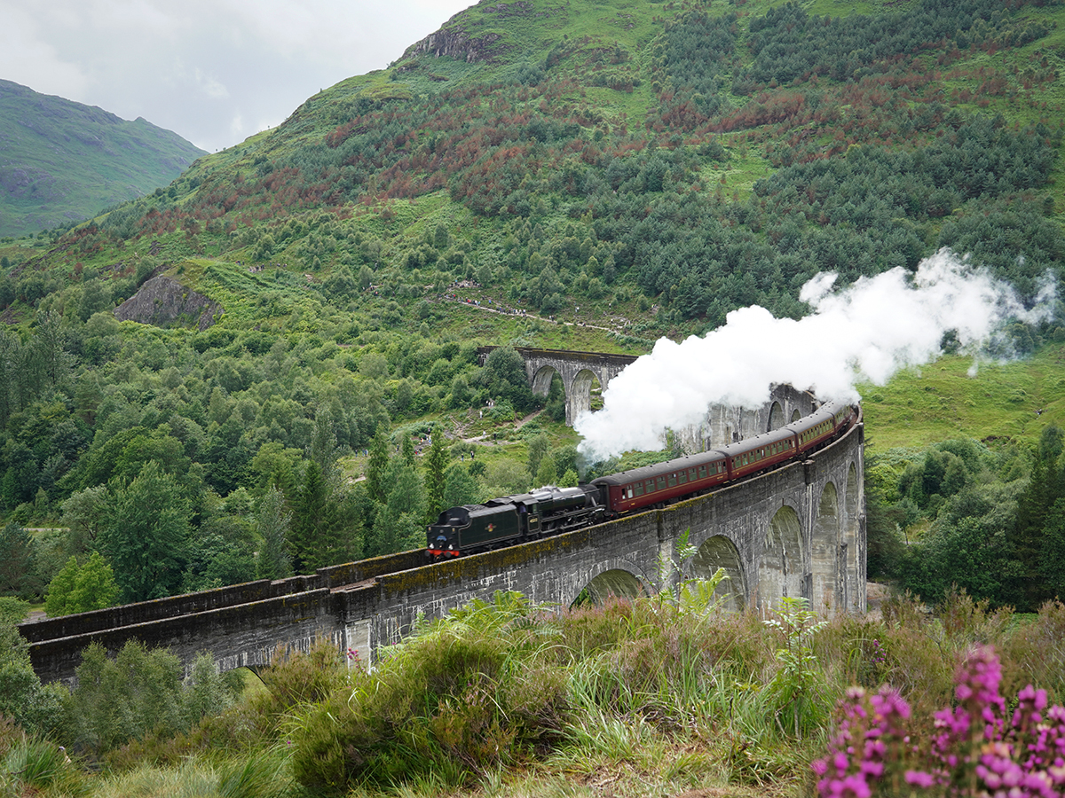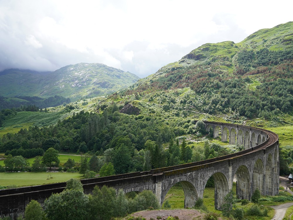 Diesen Sommer zog es uns zunächst in die schottischen Highlands. Hier besuchten wir den kleinen Ort Glenfinnan, der bekannt wurde durch sein gleichnamiges Viadukt, denn über dieses fuhr der Harry Potter Hogwarts Express. Wir hatten großes Glück, den Zug zu erwischen, den wie wir später erfuhren, wurden wenige Tage später die Fahrten wegen Wartungsarbeiten eingestellt.