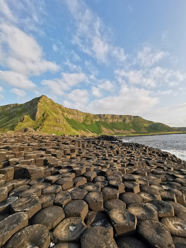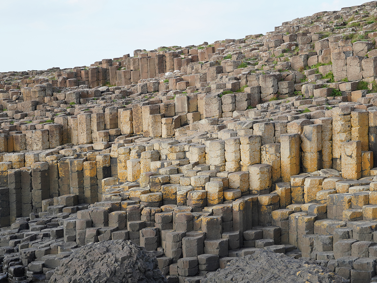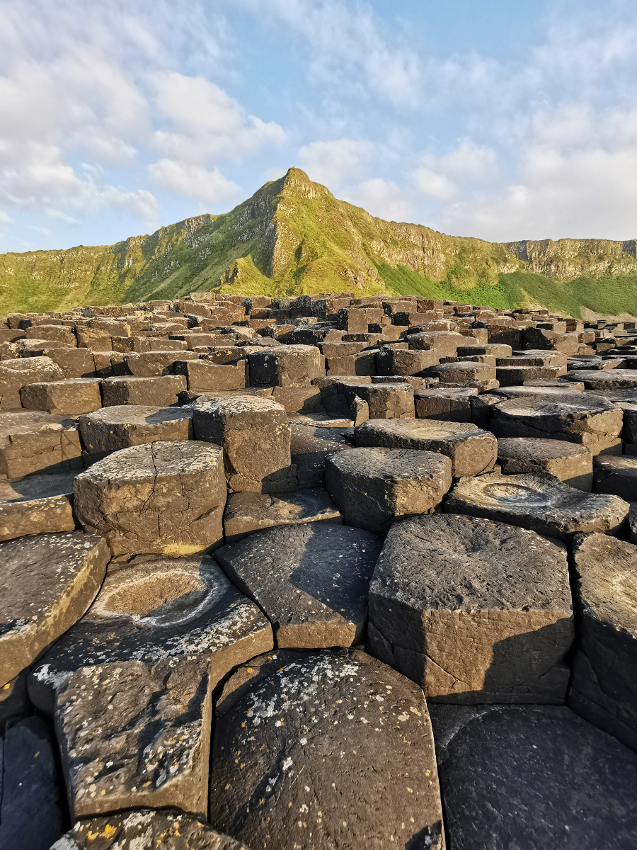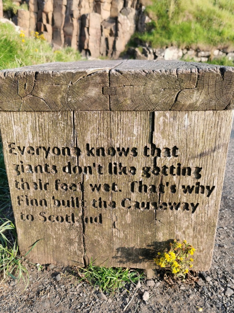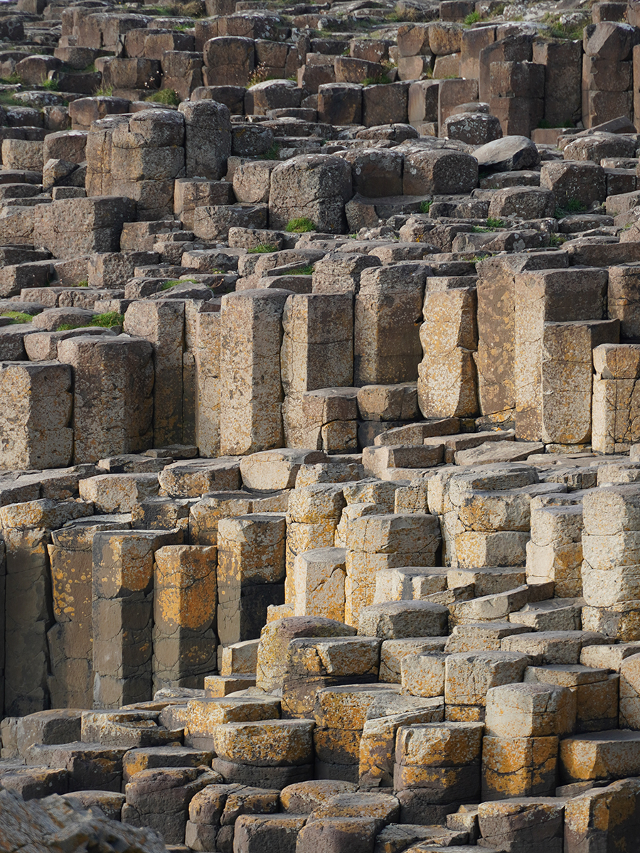 Der Giant’s Causeway (englisch für „Straße der Riesen“) liegt in Nordirland. Er besteht aus ca. 40.000 Basaltsäulen. Der Sage nach ist er entstanden, als der irische Riese Fionn Mac Cumhaill den schottischen Riesen Benandonner zum Wettkampf herausforderte, Fionn riss ein Stück aus der nordirischen Küste und baute so eine Straße nach Schottland.Tatsächlich ist er aber das Ergebnis eines Vulkanausbruchs.