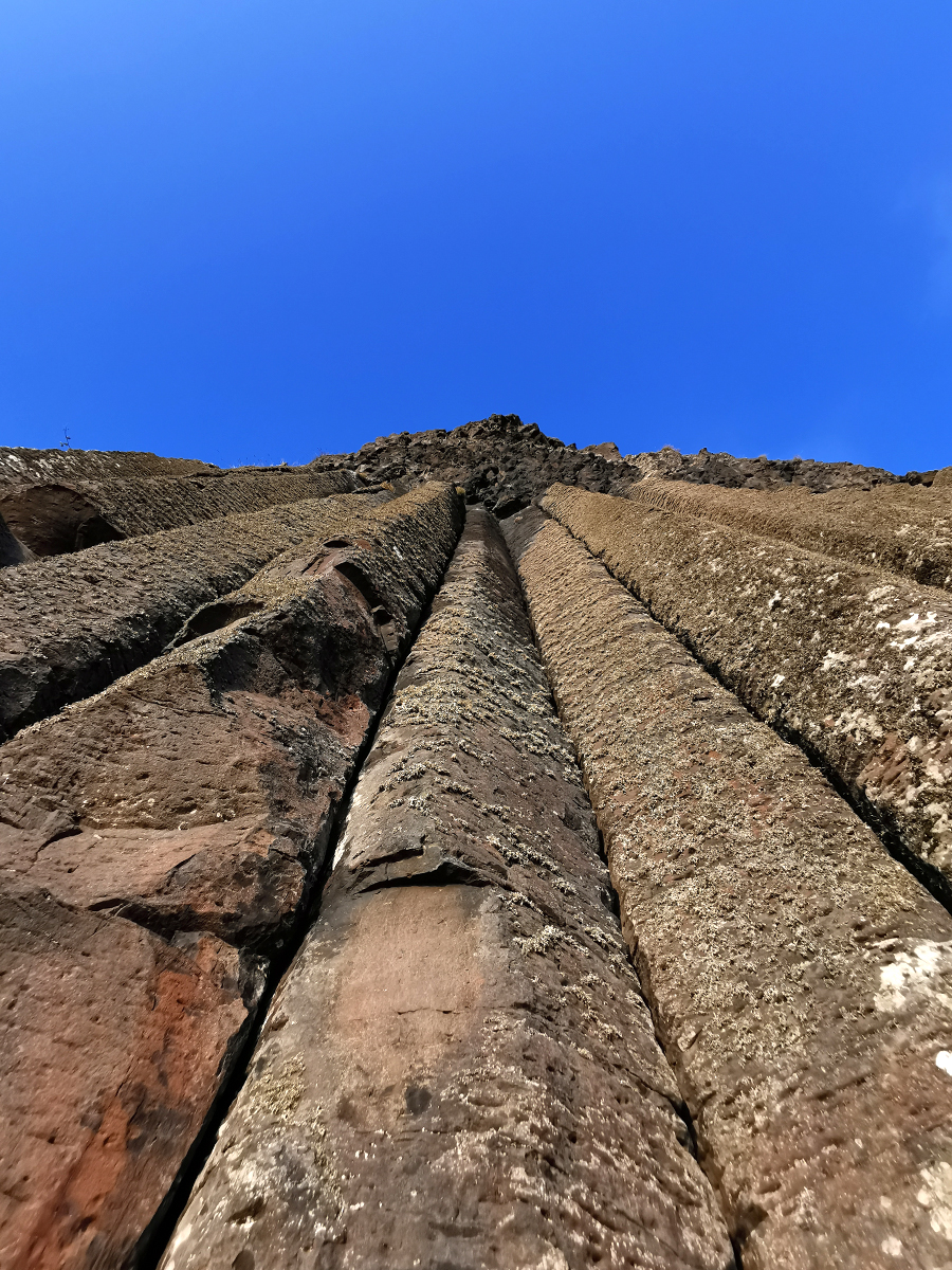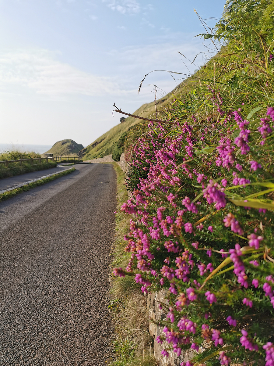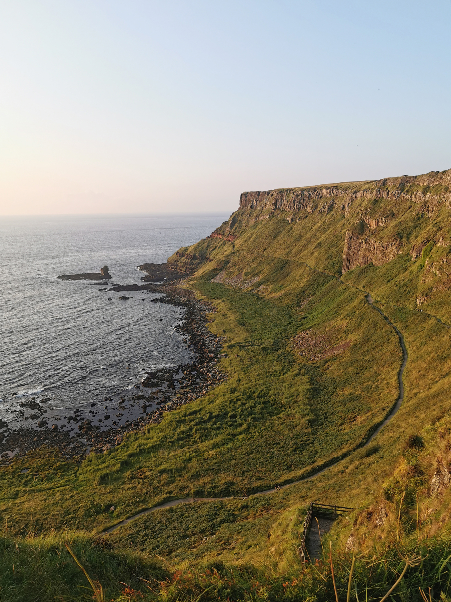 Wie auch immer, er ist sehr beeindruckend! Ab 18 Uhr kann man am Visitor’s Center umsonst parken und da wir dieses Naturschauspiel am liebsten in der Abendsonne bewundern wollten, kam uns das gerade recht. Man musste ein bisschen laufen, aber das war nun wirklich kein Problem. Die Sonne lachte, die Heide blühte und nach ca 20 Minuten waren wir schon da. 40.000 Basaltsäulen auf einem Haufen sind schon sehr beeindruckend! Man konnte über sie drüberlaufen oder sich einfach draufsetzen und dem Meer zusehen.