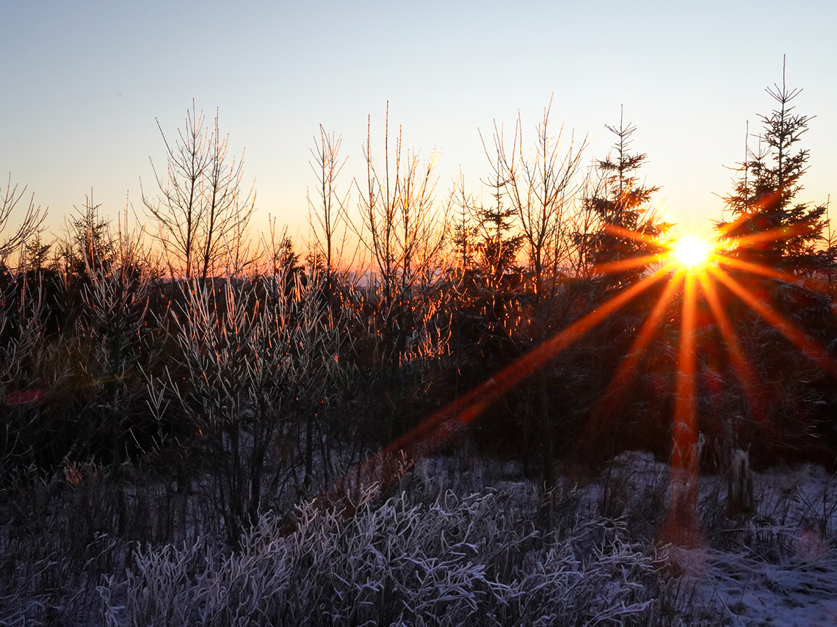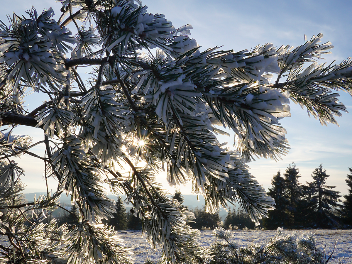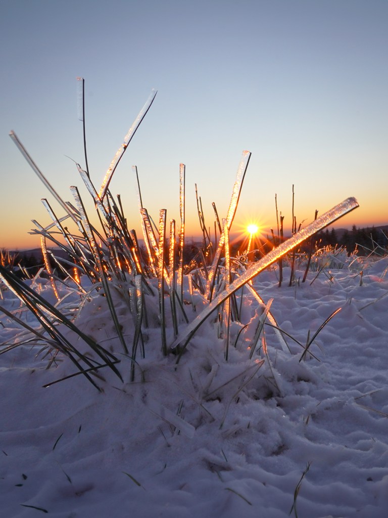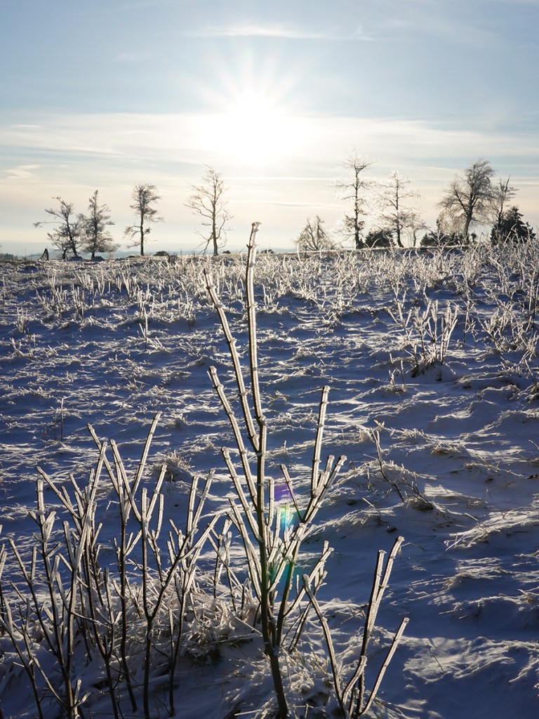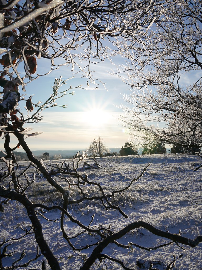 Nach vielen Wochen Dauerregen haben wir jetzt plötzlich zweistellige Minusgrade. Beim Wetterumschwung gab es ein bisschen Schnee, so dass es jetzt wieder weiß ist bei uns. Und kalt. Und gefroren. Und – Gott sei Dank – endlich mal sonnig.