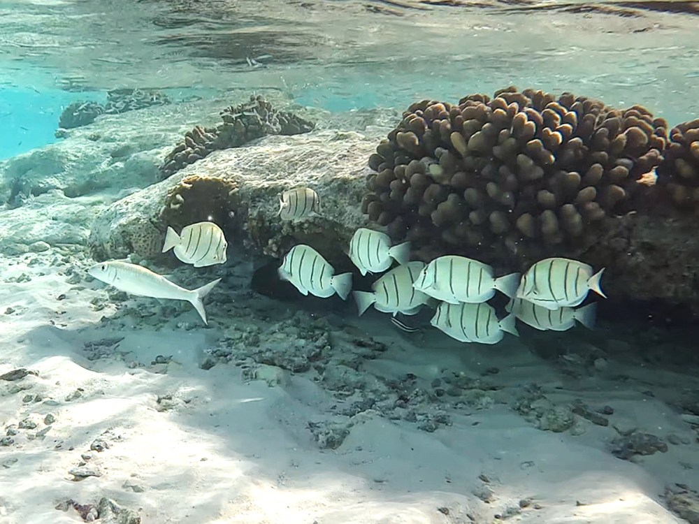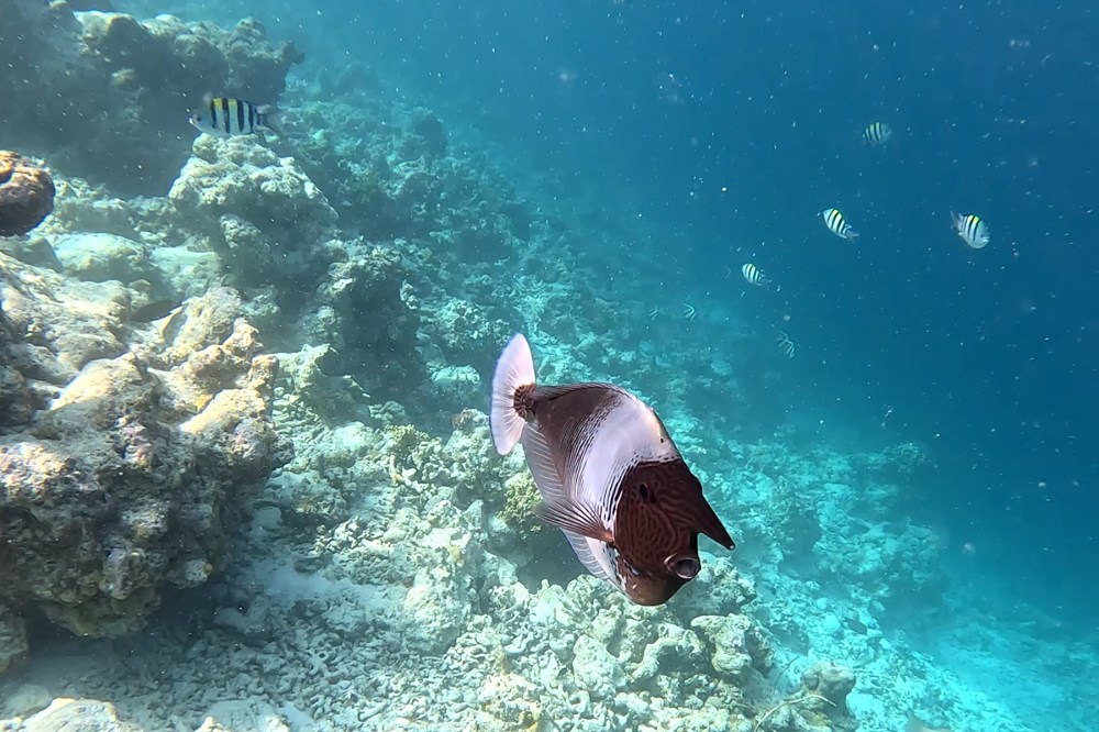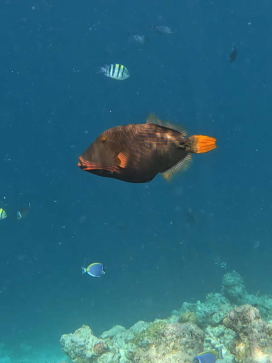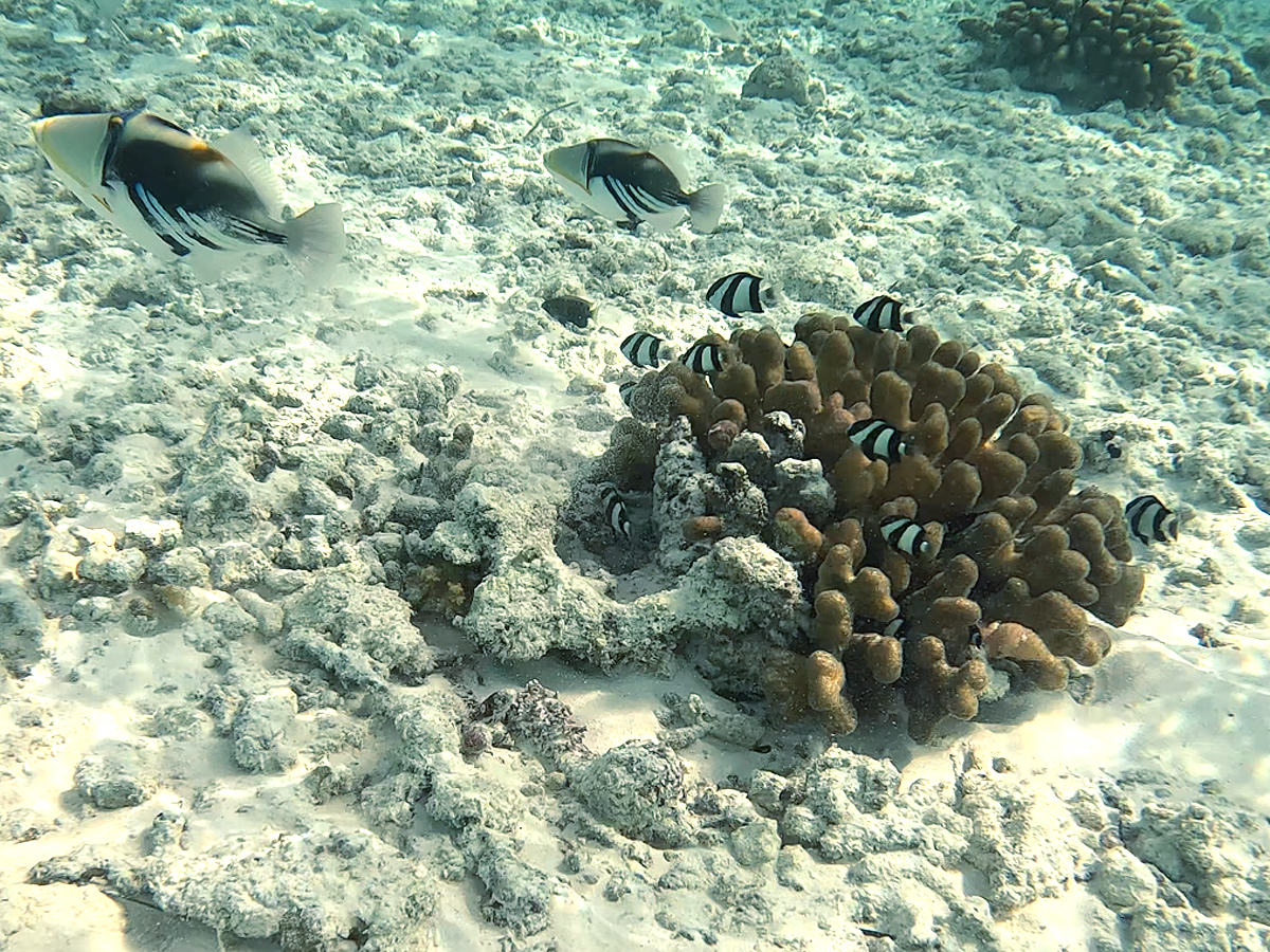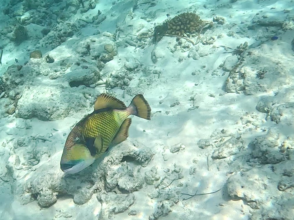 Gewarnt wurde lediglich vor dem großen Drückerfisch, dem ich aber auch fast täglich begegnet bin. Wenn man die Fische nicht gestört hat, waren alle friedlich und eigentlich überhaupt nicht an uns Menschen interessiert. Man konnte sehr entspannt schnorcheln und das alles einfach nur genießen.