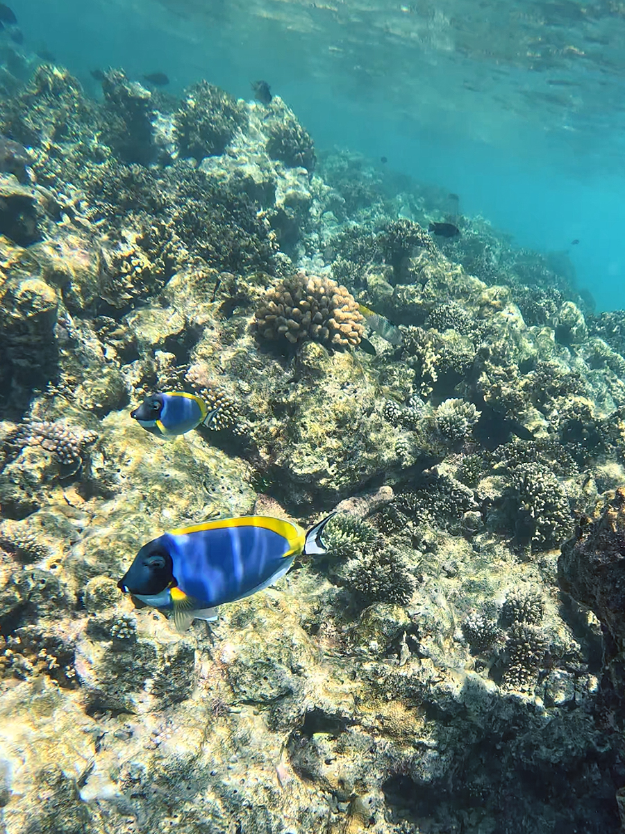Man sagt, wer auf den Malediven nicht schnorcheln/tauchen geht, war nicht auf den Malediven und dass die beeindruckendste Schönheit dieser Atolle unter Wasser zu finden ist. Das kann ich so bestätigen. Sobald man sich die Taucherbrille aufsetzt und den Schnorchel in den Mund schiebt und langsam raus zum Korallenriff paddelt, ist man in einer anderen Welt, die so bunt und artenreich ist, dass man völlig Zeit und Raum vergisst.