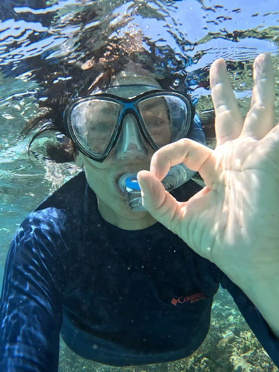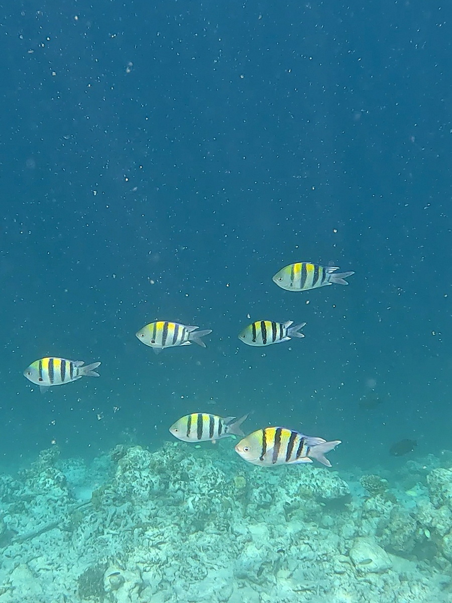 Cool war auch, dass es eine Strömung gab, die von unserer Bucht bis in die nächste Bucht ging und man sich einfach aufs Wasser legen konnte und dann gemütlich über all die hübschen Fische getragen wurde.
