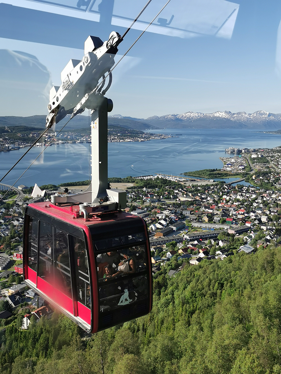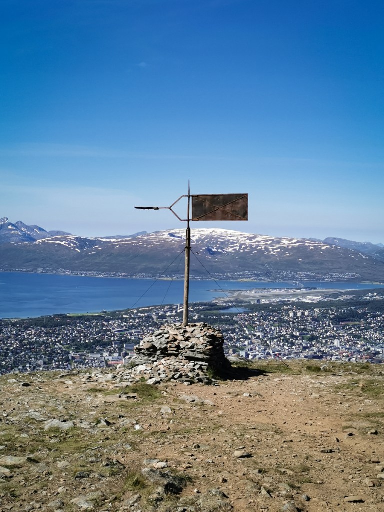 Da wir ja nun so weit oben im Norden waren, durfte ein Ausflug in den Schnee natürlich nicht fehlen. Am leichtesten ging das, wenn wir von Tromsø aus mit der Seilbahn schonmal die ersten Höhenmeter einsparen konnten. Von da aus wanderten wir zu dem Fløya (671 hm) und dann zu dem Bønntuva (776 hm). Der Weg war von all unseren norwegischen Wanderwegen der einfachste, weil man nicht über Felsen klettern oder sonstwie kraxeln musste.